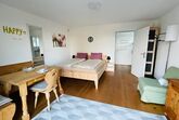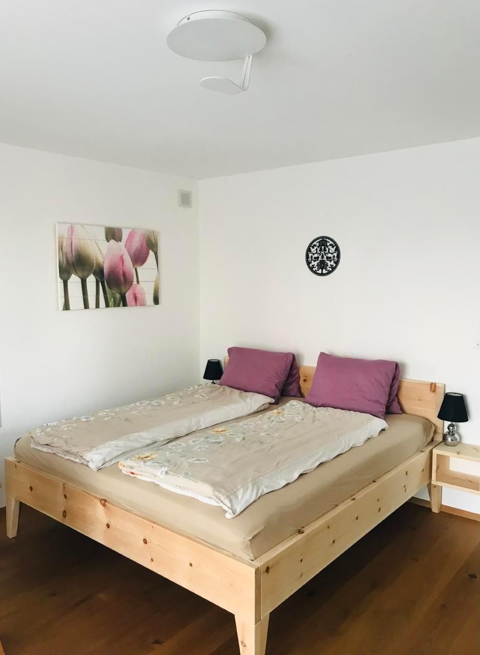 Neues, sehr bequemes Bett aus fein duftendem Arven-Holz mit neuer, grosser Matratze (180 cm)!Charmante 1-Zimmer-Ferienwohnung mit separatem Eingang im vom Eigentümer bewohnten neuen Einfamilienhaus in ruhiger Lage. Sehr gepflegt und geschmackvoll eingerichtet mit einem Doppelbett (180x190) und einer Eckbank mit Tisch und Stühlen im Landhausstil. Die Küche ist vom Wohn-/Schlafraum abgetrennt und klein, aber sehr gut ausgestattet mit Kochzubehör, Nespresso Kaffeemaschine, Kühlschrank und Ceran Kochfeld (2 Platten). Badezimmer mit DU/WC. Ein kleiner Terrassensitzplatz mit 2 Outdoor-Relax-Sesseln steht zur alleinigen Benutzung zur Verfügung. Die ganze Wohnung ist mit einem hochwertigen, geölten Eichenparkettboden belegt und verfügt über Minergie-Komfortraumlüftung. Die Fenster können mit elektrischen Fensterläden verdunkelt werden. Farbfernseher mit vielen Sendern und Internet via WiFi. Hier machen Sie Ferien im Grünen und gleichzeitig in zentraler Lage für Erkundungen in alle Himmelsrichtungen! Der Bahnhof liegt nur ca. 7 Minuten zu Fuss entfernt (vom Bahnhof zum Haus geht es teilweise leicht bergauf), der nächste Autobahnanschluss etwa 10 Minuten. Züge verkehren im Halbstundentakt nach Luzern oder zum nächstgelegenen Badesee, dem Baldeggersee mit je 20 Minuten Fahrzeit. Für Joggingfans und Spaziergeher liegt der wunderschöne Mooswald unmittelbar vor der Haustür! Eschenbach hat etwa 3500 Einwohner und bietet Nahversorgung mit Coop, Volg, Spar, Bäckerei Brioche, Dorfkäserei und eine sehr gute Pizzeria La Piazza. Es können maximal 2 Personen unterbracht werden. Paare mit einem Baby oder Kleinkind sind ebenfalls herzlich willkommen! Ein Parkplatz ist im Preis inbegriffen.Nichtraucherhaus. Gegen Gebühr bieten wir auch einen Waschdienst an.