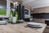 Unser Appartement mit ca. 48 m² bietet Ihnen Platz für 2-3 Personen, ausgestattet mit einem Doppelbett aus Zirbenholz, 1 Badezimmer, Wohnraum mit Schlafsofa, TV, Tischsitzecke, Küche und Balkon.
