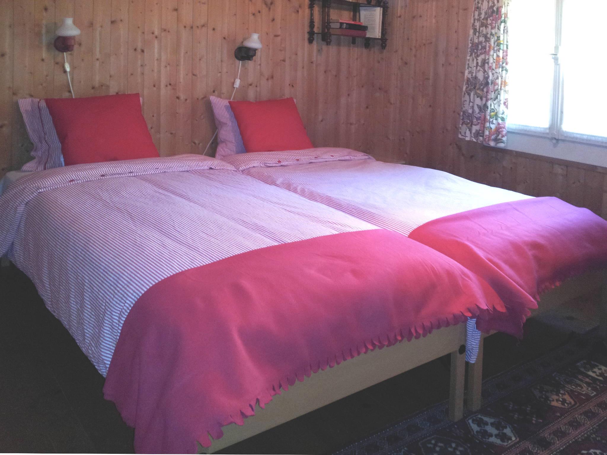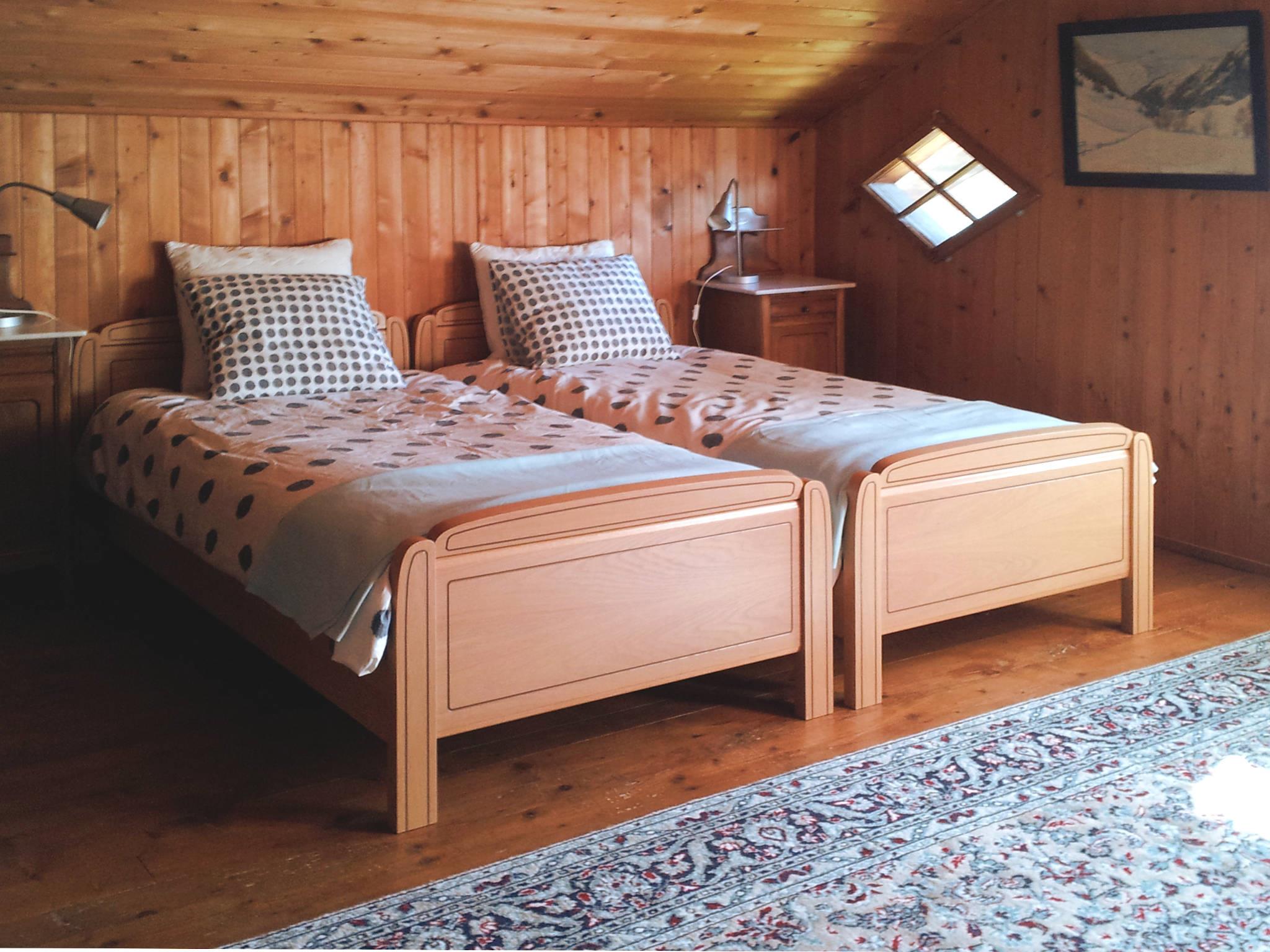 Gemütliche 6 1/2 Zimmer Ferienwohnung mit 10 Betten, passend zum Motto AlpKultur im Simmental. Ursprüngliches Simmentaler Haus mit ausgiebigen Räumen, grosser Wohnküche, gemütlichem Wohnzimmer mit zweitem Esstisch, Sitzgruppe, SAT TV, und WiFi mit gratis Internet. Fünf Schlafräume zu je zwei Einzelbetten, davon vier im Doppelbett Arrangement. Bad/Douche und WC getrennt. Gäste heizen mit Holz in einem Schwedenofen und zwei kleinen Öfen; es besteht keine Zentralheizung. Bei einer Belegung ab 6 Personen und je nach Verfügbarkeit stehen zusätzlich je eine Dusche und ein WC im Parterre bereit.