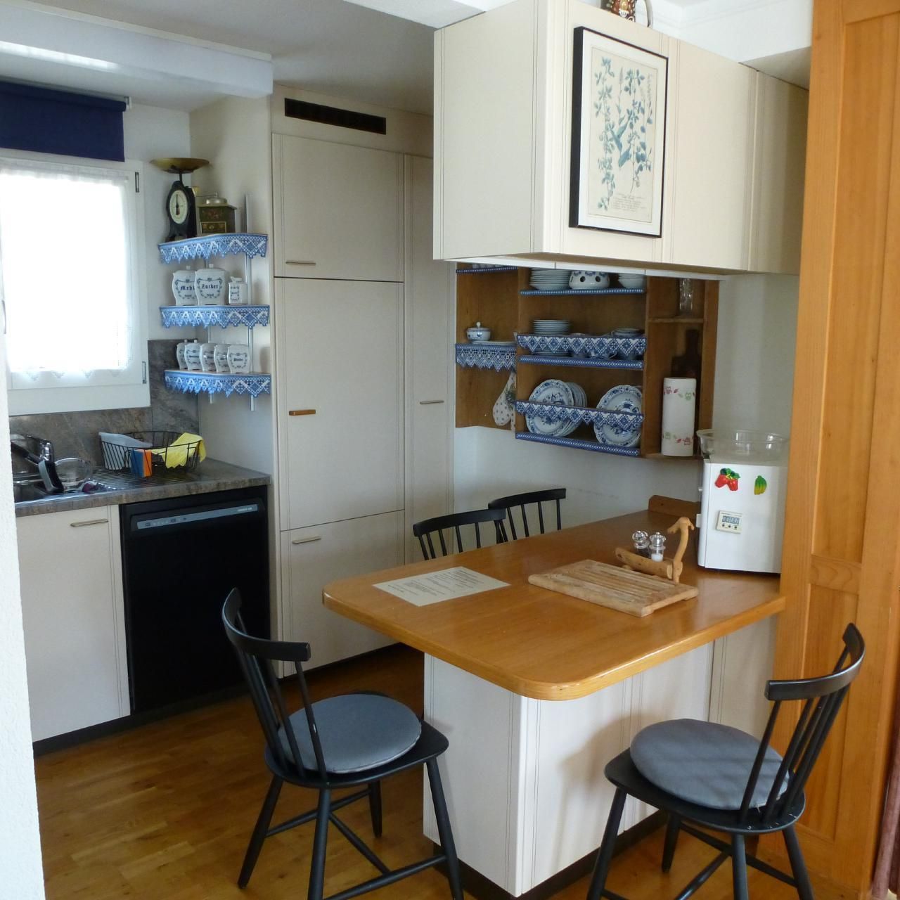 Die helle, freundlich eingerichtete Wohnung mit Parkettböden bietet auch in der Küche alles Wichtige und Nützliche für einen erholsamen, sorgenlosen Urlaub.