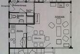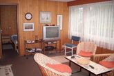 Das Haus verfügt über Küche, Bad, Wohnzimmer und drei Schlafzimmer, einem mit Doppelbett, zwei mit Doppelstockbetten, ist also für sechs Personen geeignet. Garten, eine Terrasse, eine Garage und ein Kellerraum mit Waschmaschine und Wäschetrockner stehen zur Verfügung.
