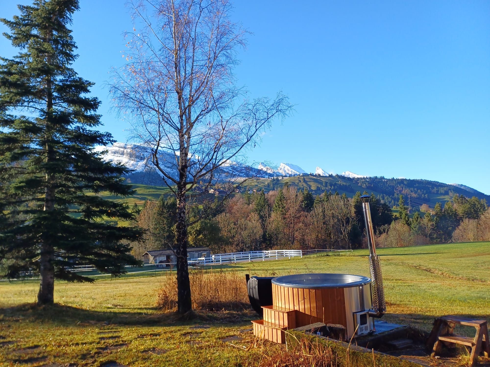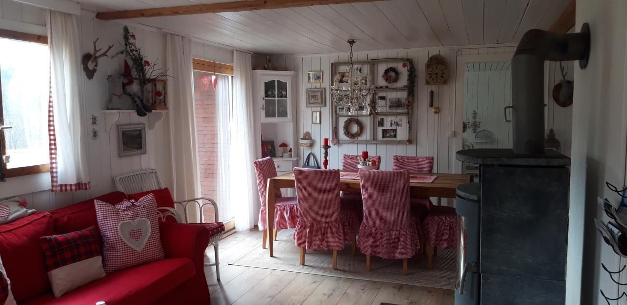 Idyllisch gelegen ist dieses romantische Toggenburgerhäuschen wo die Thur entspringt, mit Sicht auf die Churfirsten. Helle freundliche Räume und eingerichtet mit Shabby Chic Style Möblierung. Einen gedeckten Sitzplatz beim Eingang, eine Sonnenterasse auf der Südseite, ein separater Grillplatz, 4 Parkplätze und 2500 m2 Umschwung (Rietgebiet) umgeben das Haus. Der Hot Pot ist optional dazu zu mieten: bis 3 Nächte Fr. 250.-- ab 4 Nächte Fr. 300.--. Im EG befindet sich der heimelige Wohn- Essbereich und die offene Küche mit Kaffeeecke. Neben dem Elternschlafzimmer mit Doppelbett ist das Kinder Spielzimmer oder Babyzimmer. Erwärmt wird das Haus durch die Bodenheizung und den effizienten Schweden- Specksteinofen. Einfache Dusche / WC. Entree mit Garderobe und Schuhablagen. Im OG hats zwei 2 Bettzimmer und ein kleines schmuckes Einerzimmer. WC und Gemeinschaftslavabo. Sehr ruhige Lage mit direktem Blick zu den Churfirsten. Trotzdem zentral gelegen mit dem Skibus 70 m vor dem Haus während der Saison. Das Haus ist ideal für Familien- oder sogar 3 Generationenferien. Bis zu 4 Personen haben auch in unserem Studio Chic Platz, welches unter Ferienwohnungen zu finden ist. Im Schnee vor dem Haus sieht man Spuren von Rehen, Füchsen und Eichhörnchen und wenn man ein bischen Glück hat, kann man die Tiere vom Haus aus beobachten.