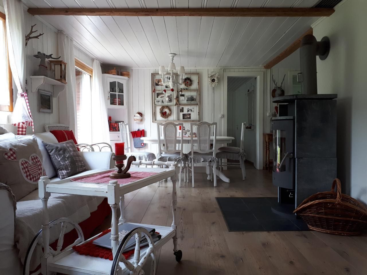 Sonstige Wohnzimmerausstattung (Wohnzimmer1): Sehr helles, gemütliches Wohnzimmer mit viel Ambiente. Sofa und eine antikes Kuschelbett lädt zum verweilen und entspannen ein. Effizienter Schwedenspecksteinofen, mit grossem Sichtfenster für romantische Momente. Essbereich mit Ausziehbarem Esstisch, offene Küche.
