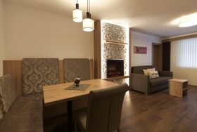 Das Appartement Nr. 3 liegt im ersten Stock und verfügt über einen großen Süd- Westbalkon mit Blick auf die imposante Bergwelt. Es verfügt über 2 Doppelzimmer mit jeweils 1 Badezimmer mit Badewanne mit Duschtüre/WC; 1 Wohnküche (Mikrowelle, Wasserkocher, Kapsel-Kaffeemaschine, Filter-Kaffeemaschine, Spülmaschine, Kühlschrank mit Gefrierfach, Cerankochfeld mit 4 Kochfeldern, Backrohr, Essbereich, Kochgeschirr, Speisegeschirr und Besteck uvm.) mit gemütlichem Wohnbereich. Getrennte Betten auf Anfrage möglich. Größe ca. 73 m²