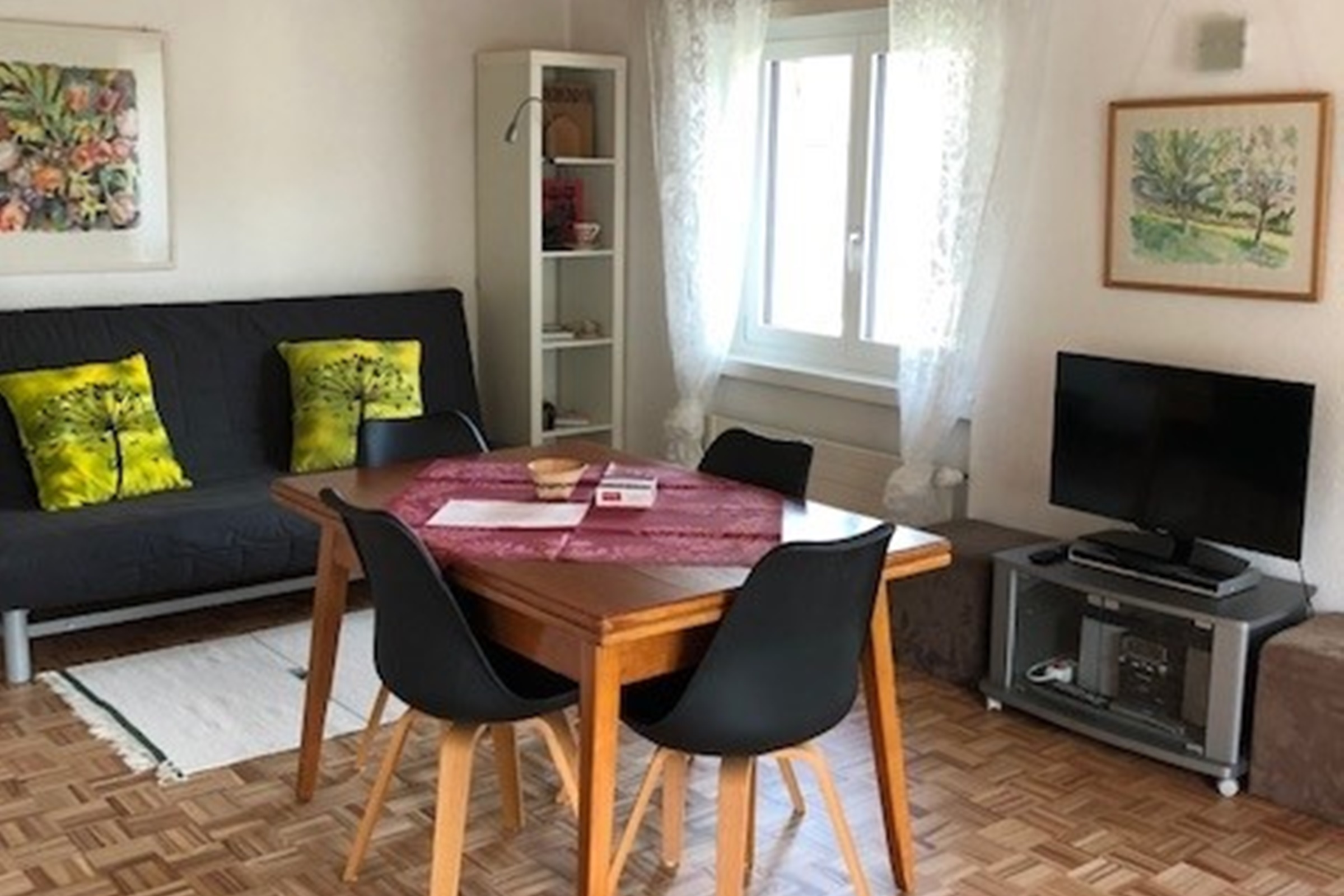 Die gemütliche Wohnung mit sonniger Terrasse ist komfortabel, zweckmässig und mit viel Charme eingerichtet. Sie verfügt über WLAN und einen TV im Wohnzimmer.