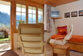 2-Zimmerwohnung (28m2) am ruhigen, sehr sonnigen Mühleport in Hanglage. Zwei Betten im Schlafzimmer, ein Bett im Wohnzimmer (tagsüber Liegebett/Sofa) ausziehbar auf ein weiteres Bett (total vier komplette Betten). Bad/Dusche, offene Küche, TV/Radio, Internet/WLAN, Aussensitzplatz mit freier Panorama-Aussicht, Parkplatz. Die Ferienwohnung liegt im Parterre und ist vom Parkplatz über eine kurze Aussentreppe erreichbar. Bushaltestelle, Sportzentrum, Talstation Silleren-Bahnen: 5 Minuten Fussweg. Dorfzentrum: 10 Minuten Fussweg. Haustiere sind nicht erlaubt. Nichtraucherwohnung.