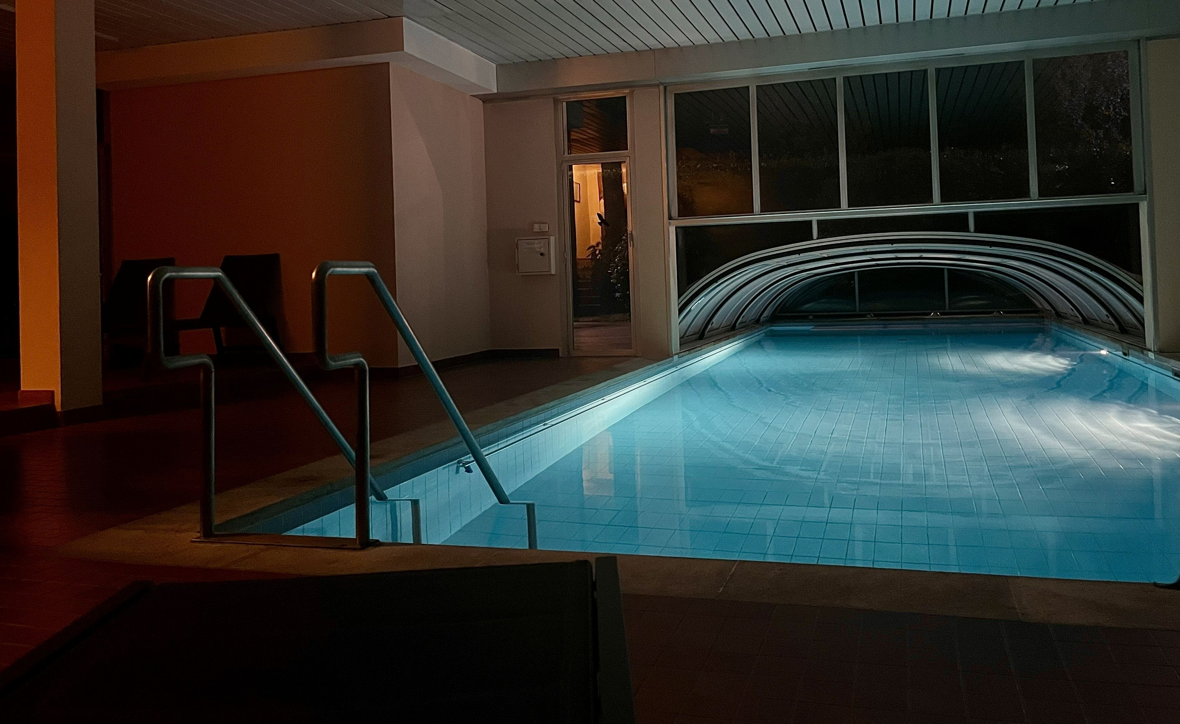 Ferienwohnung Casa alle Vigne mit Pool und Sauna zentral gelegen, wenige Gehminuten vom Lago Maggiore. Die Wohnung befindet sich im 1. Stock eines Mehrfamilienhauses in zentraler Lage, mit Balkon. Im Haus befindet sich ein Fahrstuhl. Der gepflegte Garten bietet eine große Liegewiese aus Rasen- und Steinfläche, sowie ein beheiztes kombiniertes Innen- und Außenschwimmbad mit der Größe 15 x 5m, durchgängig überdacht (im Sommer kann das Cabriodach geöffnet werden) uns ganzjährig nutzbar, sowie eine Sauna, Duschen und WC. Nichtraucher Wohnung. Möblierte 1 1/2 Zimmer-Wohnung (50m2) mit separater Küche, Glaskeramik-Herd, Ofen, Geschirrspüler, Kühlschrank mit Gefrierfach, Nespresso-Kaffeemaschine. Wohn/Esszimmer mit Polstermöbeln (verwandelbar in Sofa-Bett 140cm Breite), durch eine Halbmauer getrennter Schlafbereich mit 2 hintereinander stehenden Einzelbetten, SAT-TV, DVD, DAB+ Radio mit Bluetooth, WLAN und Klimaanlage. Badezimmer mit Sitzbadewanne und WC. Balkon mit Tisch und Stühlen. Separates Schrankzimmer mit Kleiderschränken. Die Piazza von Ascona ist ca. 8 Gehminuten entfernt.