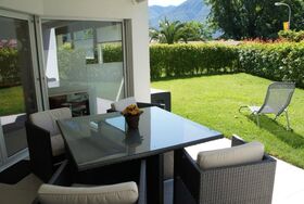 Neuere 4 1/2-Zimmer-Gartenwohnung, Baujahr 2009, sehr gepflegt möbliert, Natursteinböden in der ganzen Wohnung, zentral gelegen, 1-2 Minuten zu Fuss zum See, verschiedene Einkaufsmöglichkeiten in unmittelbarer Umgebung, wunderschöner Garten mit einem Anteil zur alleinigen Benutzung, gedeckter Sitzplatz.Exklusive 4 1/2 Zimmerwohnung im Erdgeschoss (140 m2), mit schönem Garten und gedecktem Sitzplatz, 1 Doppel- Elternschlafzimmer mit TV, Massagesessel und eigenem Badezimmer (Doppellavabo, WC und Badewanne), 1 weiteres Doppelschlafzimmer und 1 Kinderzimmer mit einem Etagenbett (unteres Bett 140cm breit, oberes Bett 90cm breit), zusätzliches separates WC mit Dusche. Offene Küche, Wohn-Essraum modern eingerichtet, mit SAT TV (2 Stück), SAT Radio, DVD resp. CD Spieler, Natel, Fahrräder u.s.w. Im Untergeschoss, per Aufzug erreichbar, befindet sich der Keller mit eigener Waschküche (Waschmaschine und Tumbler), sowie die Tiefgarage mit eigenem EinstellplatzBasisinformationen: