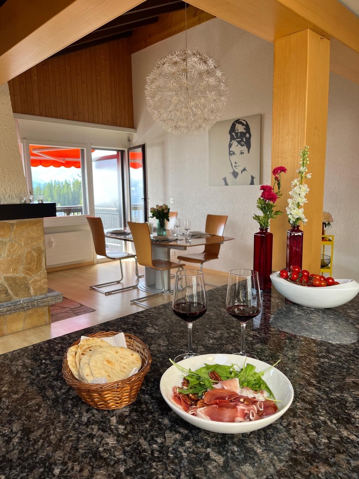 Entspannen Sie sich in unserer gemütlichen 2,5 Zimmer-Wohnung im Herzen Montanas. Die moderne und gut ausgestattete Küche eignet sich gut, um im gemütlichen Beisammensein zu kochen und die Abende zu geniessen.