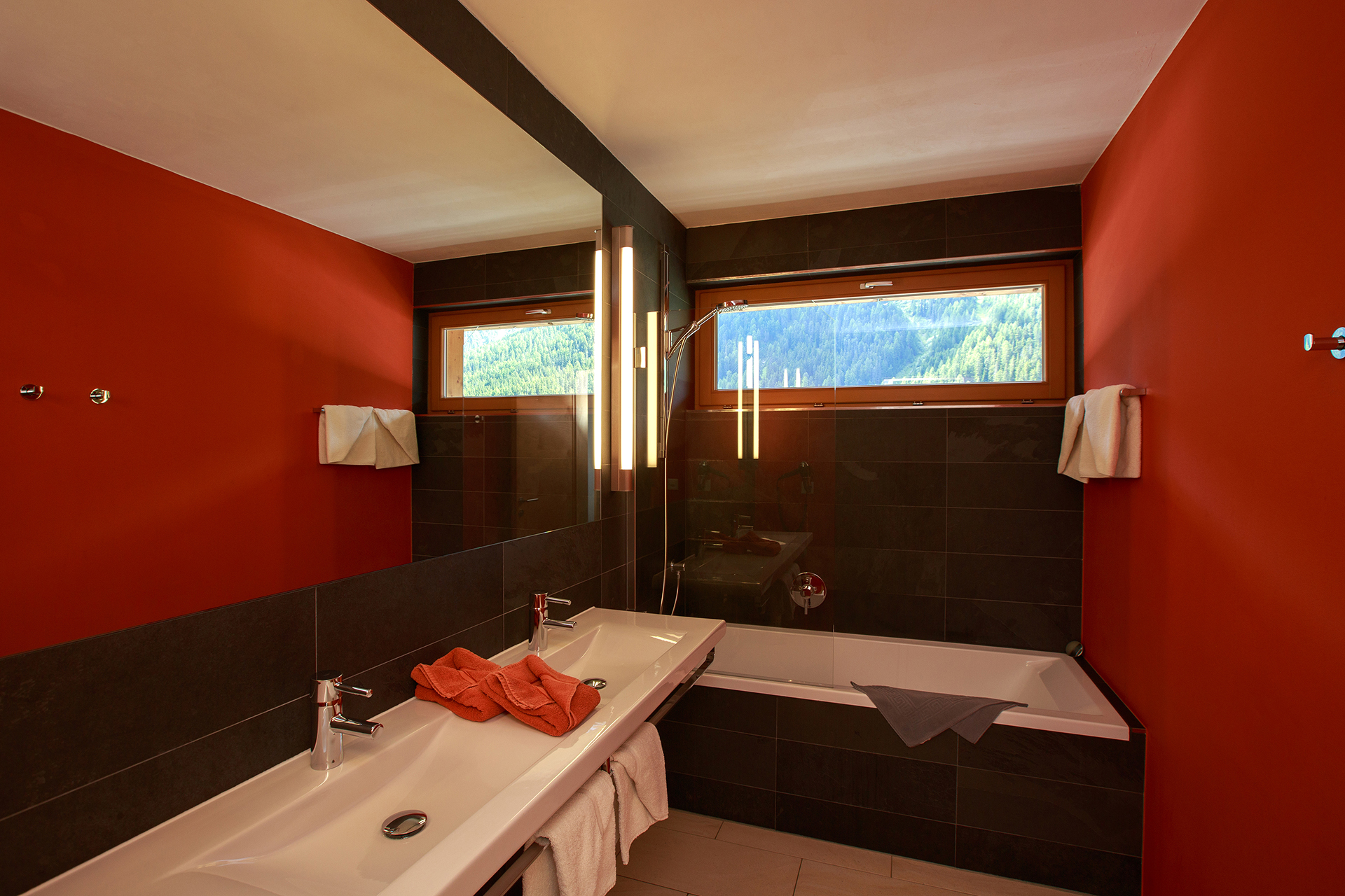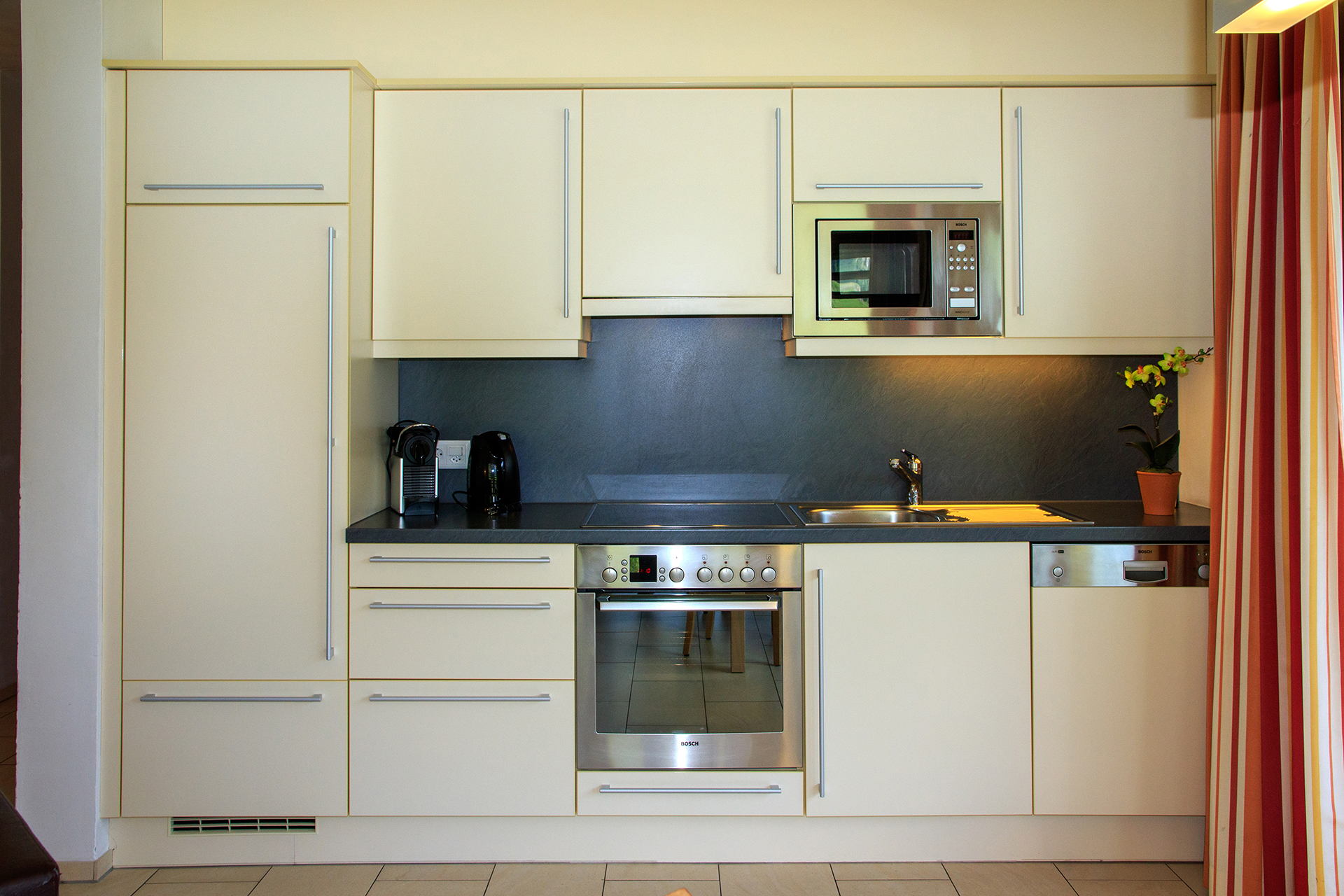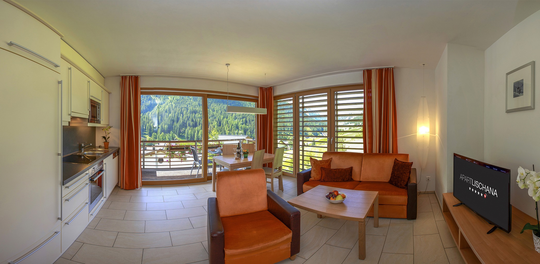 Wohnung für 4-5 Personen, luxuriös und modern eingerichtet. Ausgestattet mit Wohnküche, Geschirrspüler, Backofen, Mikrowelle, Safe, Telefon, Radio/CD-Player, Internetanschluss, Bettwäsche, Frottewäsche, Nespresso Kaffeemaschine. Täglich kostenloser Lieferservice für Ihre Brot Bestellung, bis vor Ihre Wohnungstür. 2 Schlafzimmer und 2 Nasszellen mit Haarfön. Balkon auf der Südseite mit wunderschönem Ausblick über das ganze Samnaun Tal bis ins benachbarte Tirol.