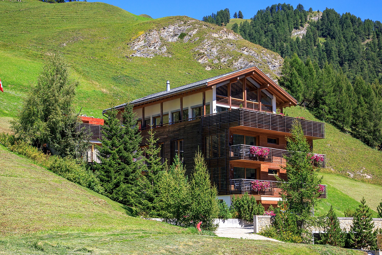 Erleben Sie Atmosphäre, Luxus und stilvolles Design in unserem 2006 neu erbauten Wellness Apartments. Entspannen Sie sich in unserer Wellness Landschaft der 1. Klasse. Idyllische ruhige, sonnige Lage am Dorfrand von Laret. Wenige Meter bis zur Skibushaltestelle, Talabfahrt bis zum Haus. Geführte Ski und Sommerwanderungen sowie Kinderbetreuung auf Anfrage. Optimaler Ausgangspunkt für Sommer und Winterferien.