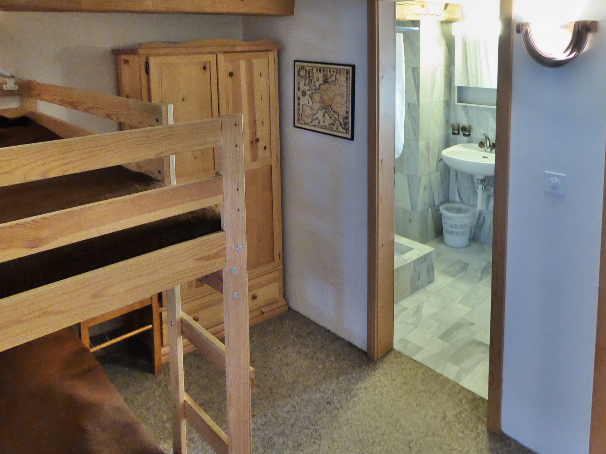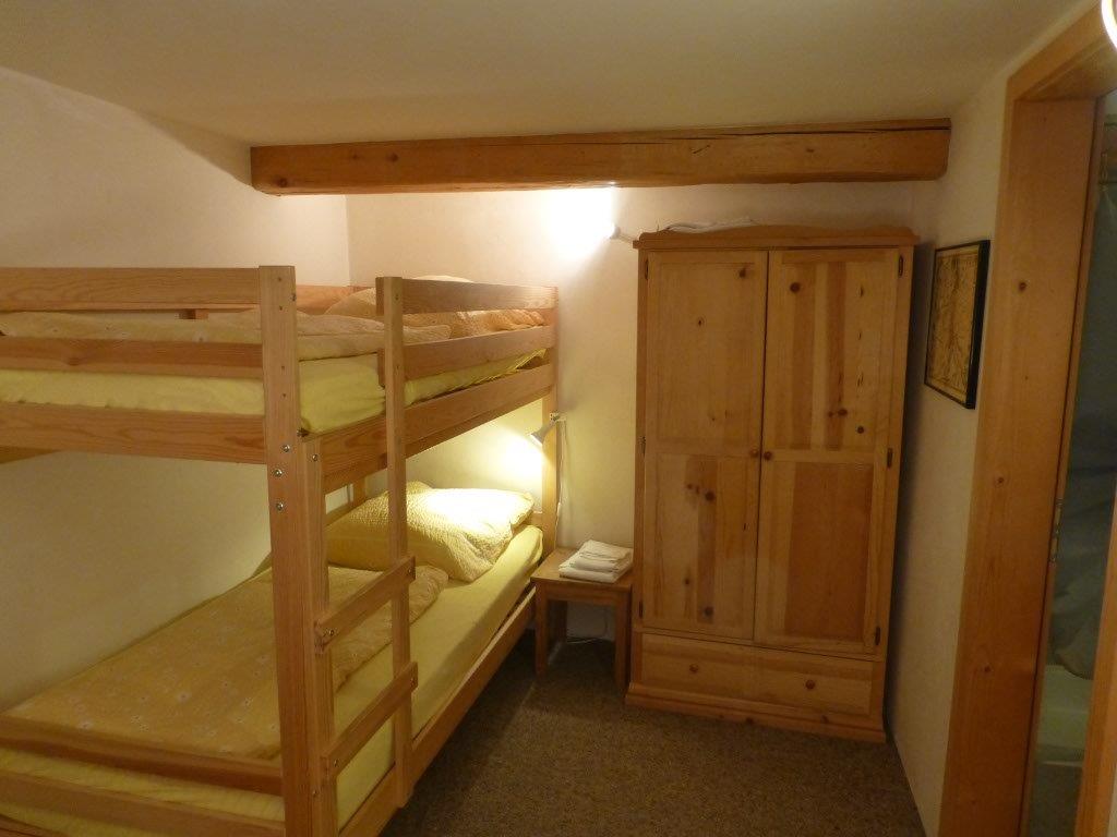 Im kleinen Vorraum (vom Wohnzimmer durch einen schweren Vorhang getrennt) steht ein Etagenbett;