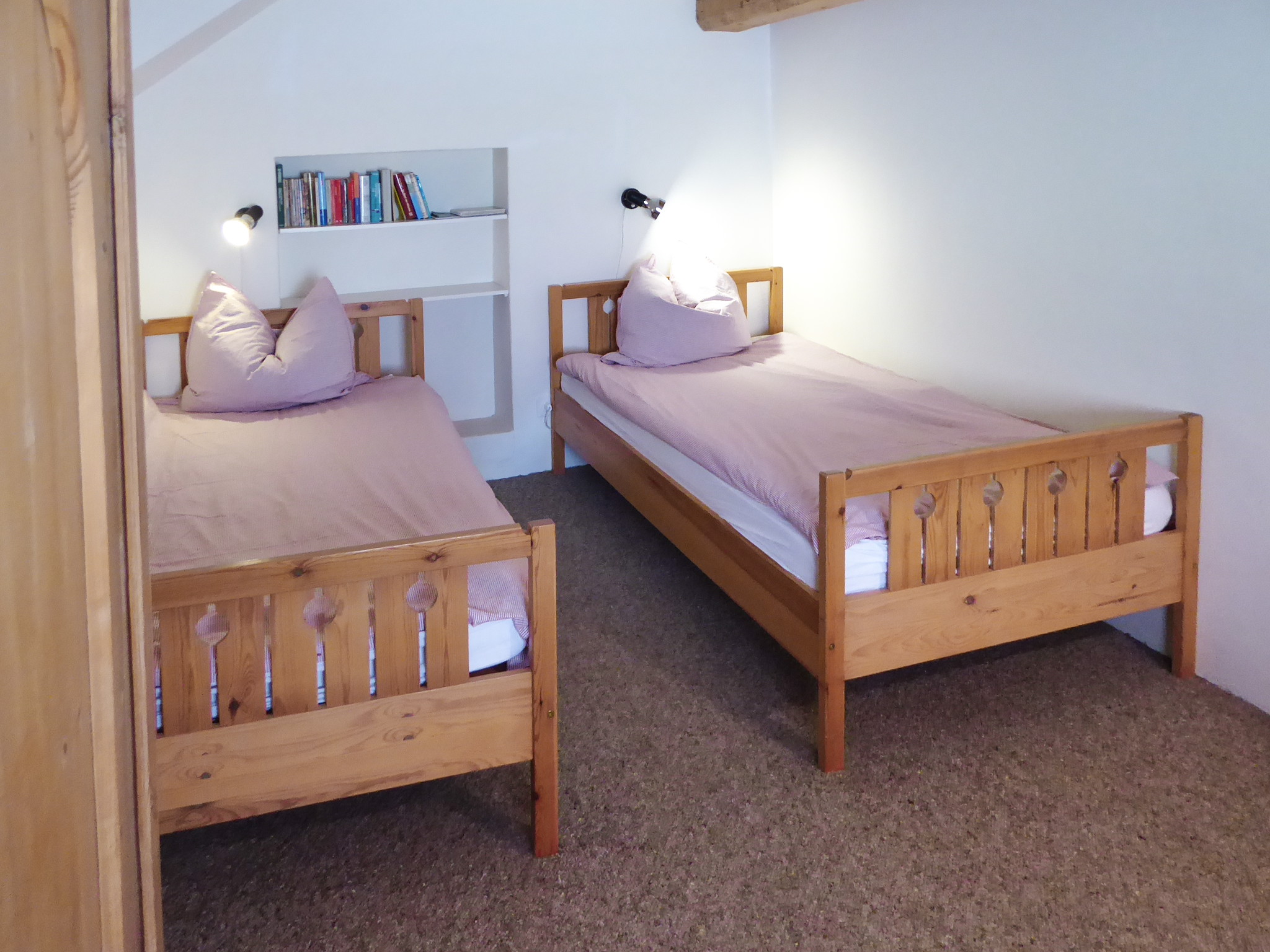 Ein Schlafzimmer mit zwei Einzelbetten;