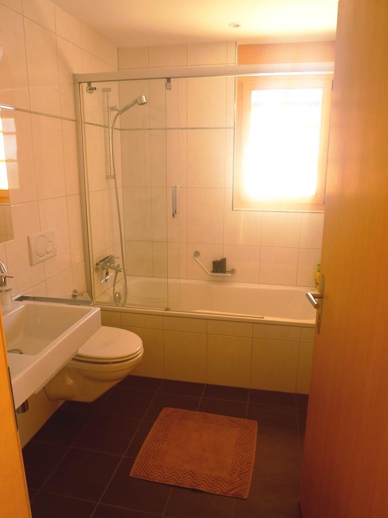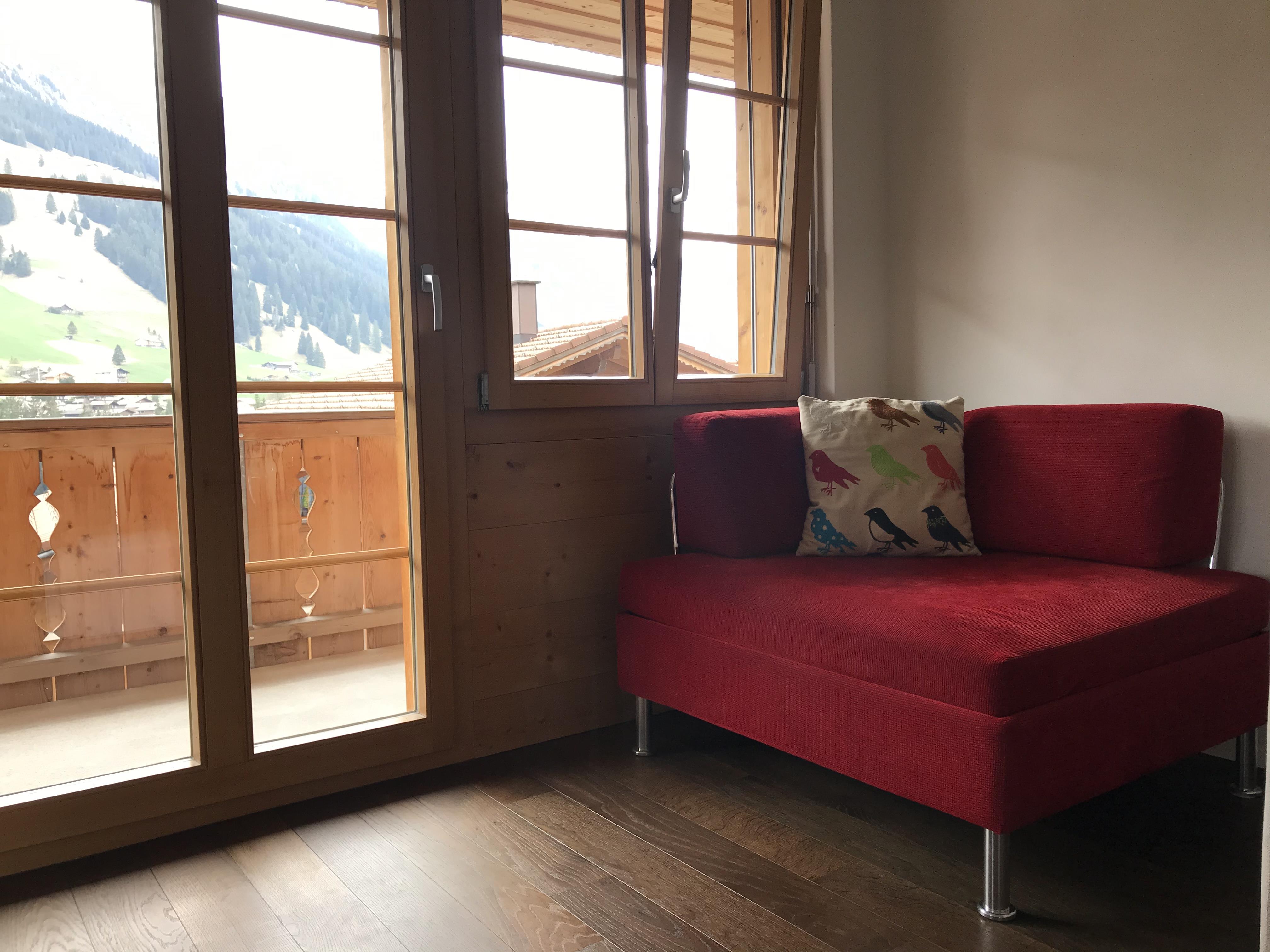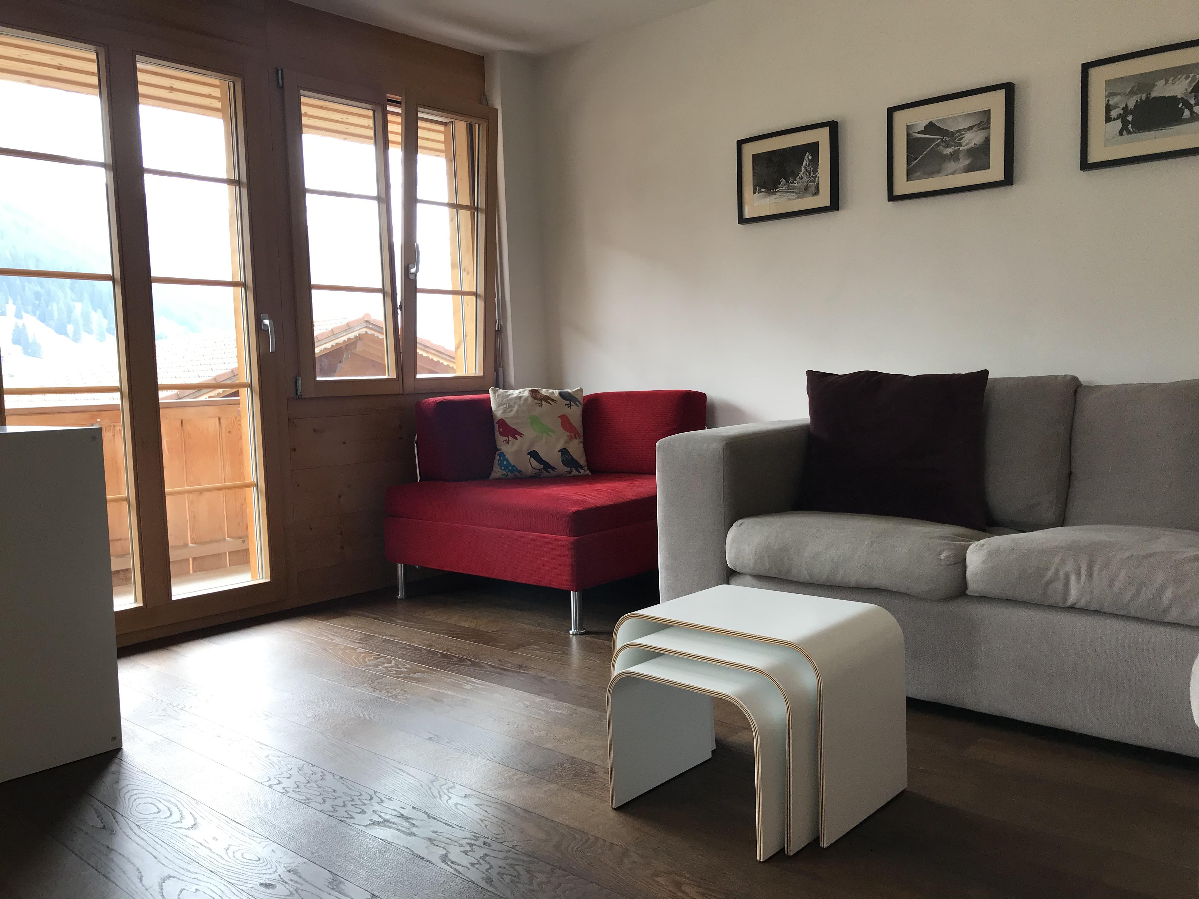 Schöne neue, modern eingerichtete 2.5-Zimmerwohnung im 1. Stock (62 m2) nähe Dorfzentrum. Die Wohnung ist perfekt für 4 Personen, bietet jedoch bei Bedarf noch zusätzlich 3 weitere Schlafplätze (Sofa und Schlafsessel) im Wohnzimmer.