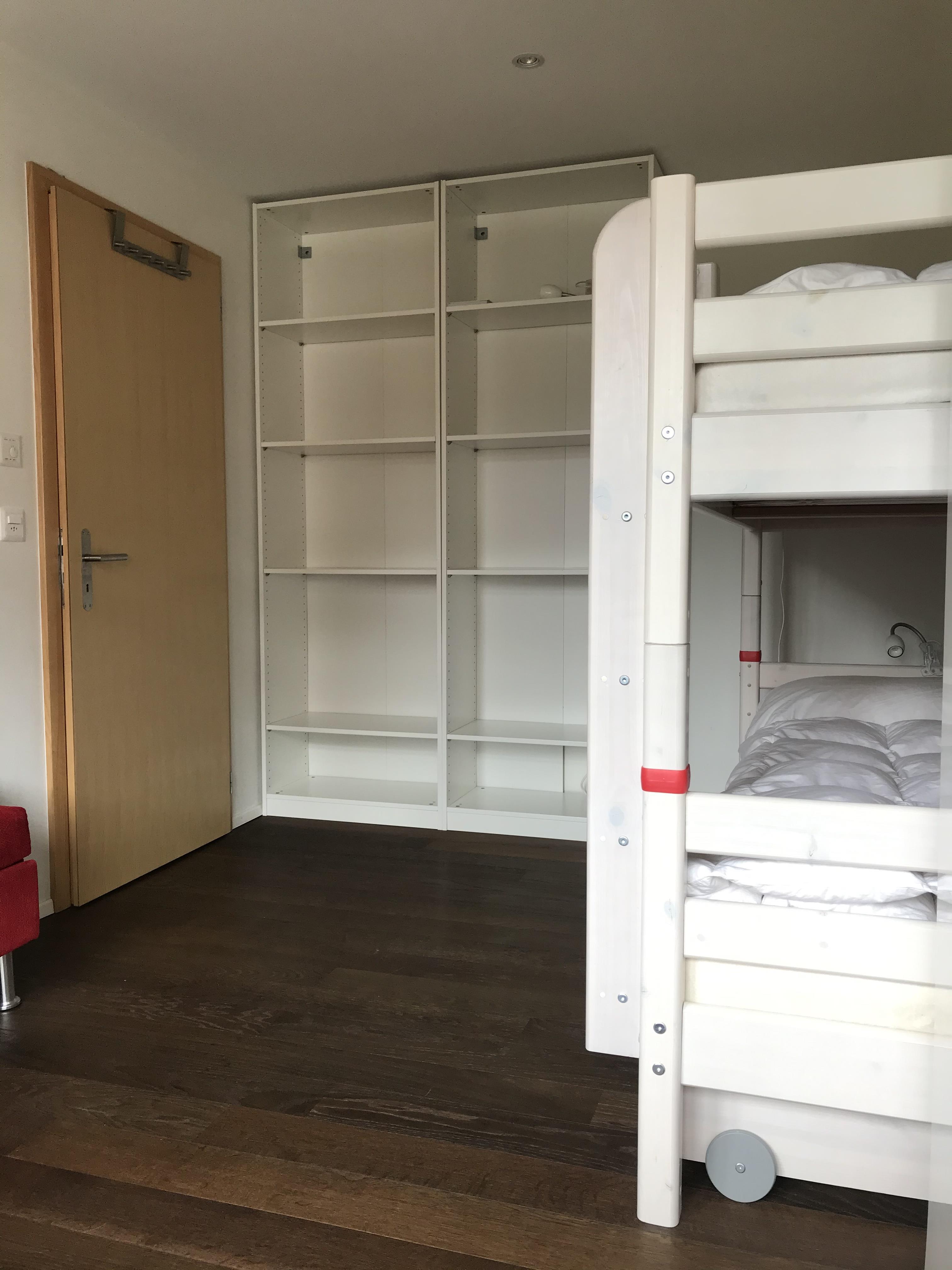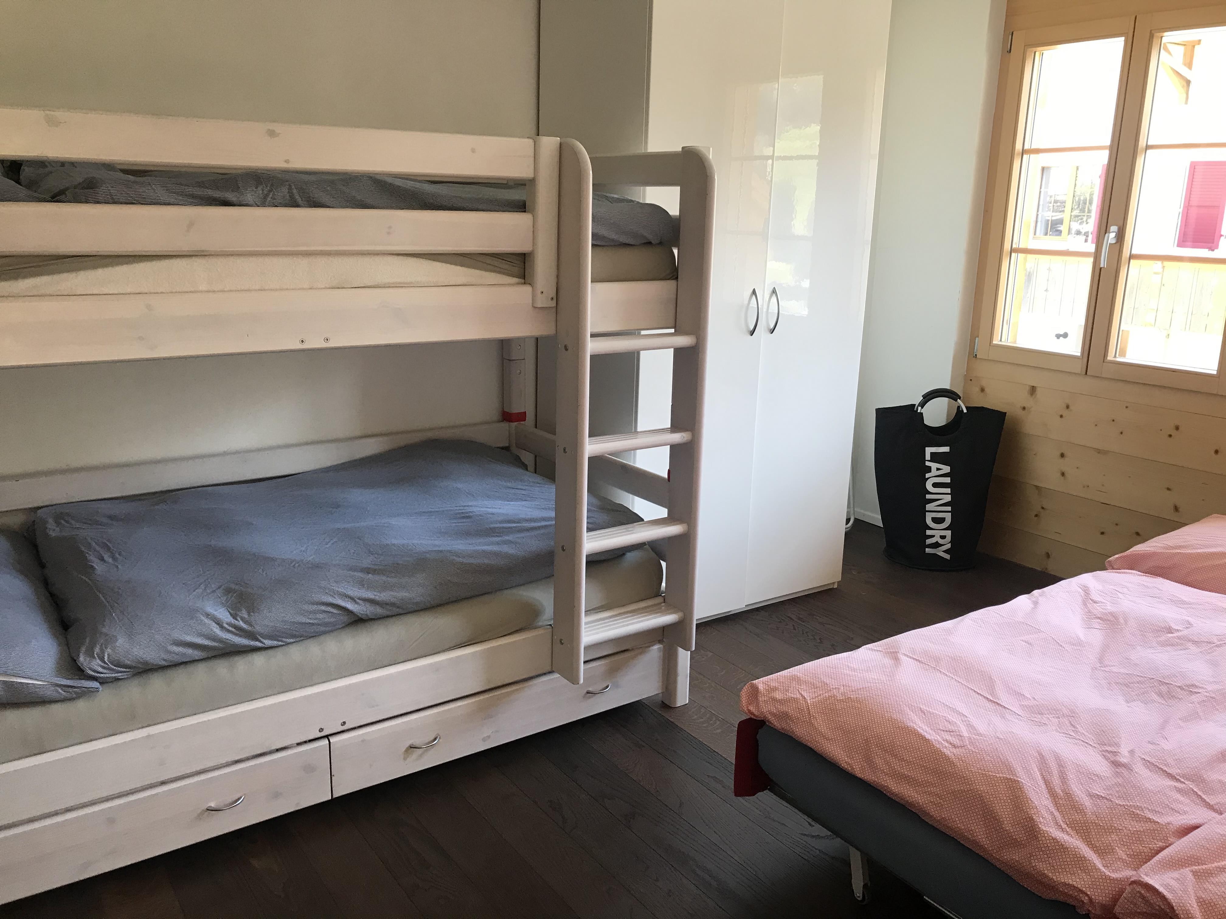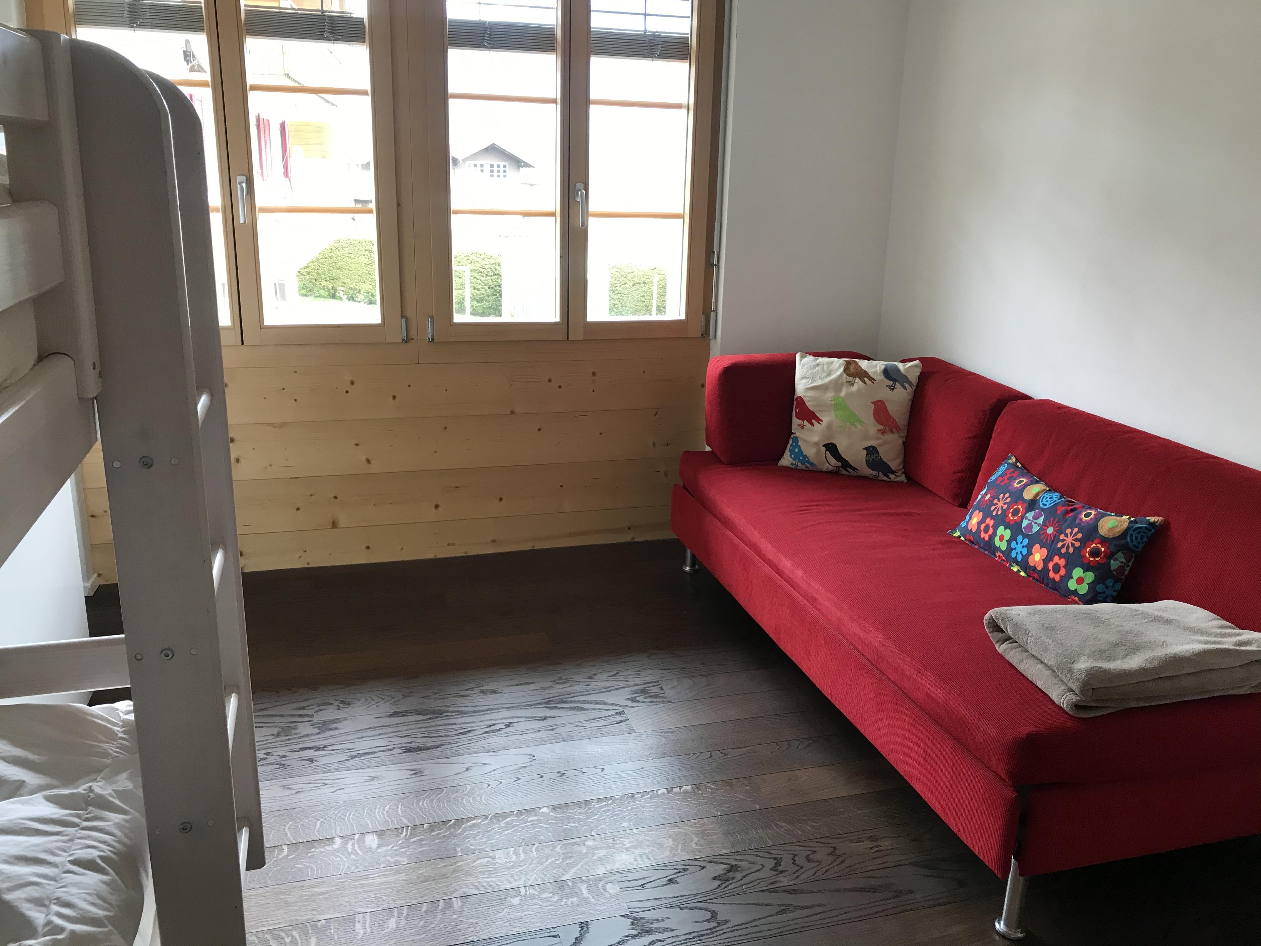 Schöne neue, modern eingerichtete 2.5-Zimmerwohnung im 1. Stock (62 m2) nähe Dorfzentrum. Die Wohnung ist perfekt für 4 Personen, bietet jedoch bei Bedarf noch zusätzlich 3 weitere Schlafplätze (Sofa und Schlafsessel) im Wohnzimmer.