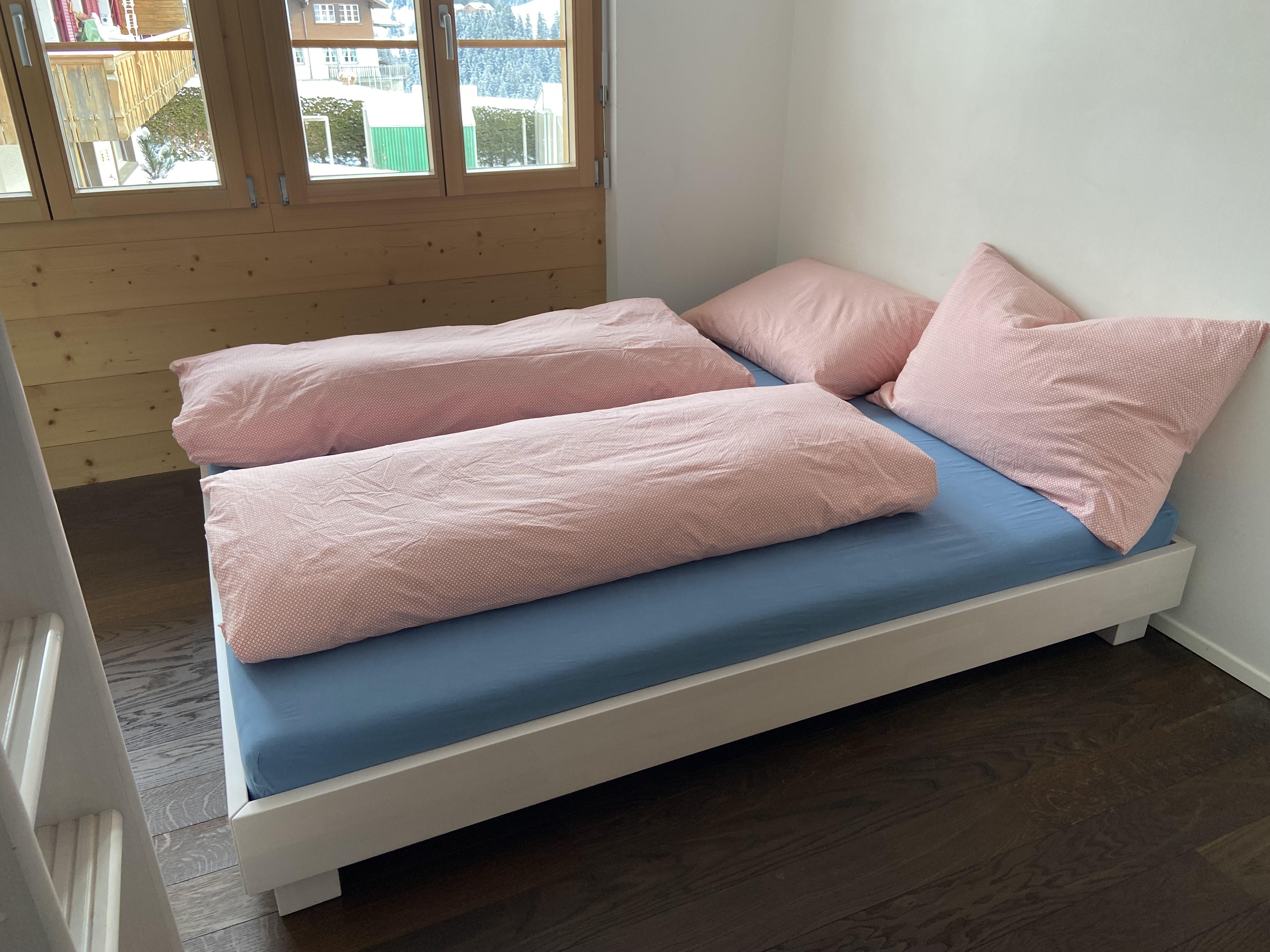 Sie verfügt über einen grossen Wohnbereich mit Esstisch, Schlafsofa (für 2 Personen/Liegfläche 160 cm), (Schlaf-)Sessel (für 1 Person), 1 Schlafzimmer mit 1 Etagenbett (2 Personen) und neu ab der Wintersaison 2021/22 über 1 Doppelbett mit hochwertigen Matratzen (160 x 200), 1 Bad mit Badewanne / WC, 1 separates WC. Top moderne Küche mit Backofen, Kühlschrank mit Gefrierfach, Geschirrspüler und Espressokaffeemaschine. Dazu kommt ein schöner, sonniger Balkon mit traumhafter Aussicht. Die Aussenanlage/Garten ist offen und kann mitbenutzt werden. Gratis WLAN. Ski- und Veloabstellraum. Parkplatz in der Einstellhalle mit direktem Zugang zur Wohnung mit Personenaufzug. Nichtraucherwohnung. Haustiere nur mit Rücksprache gestattet.