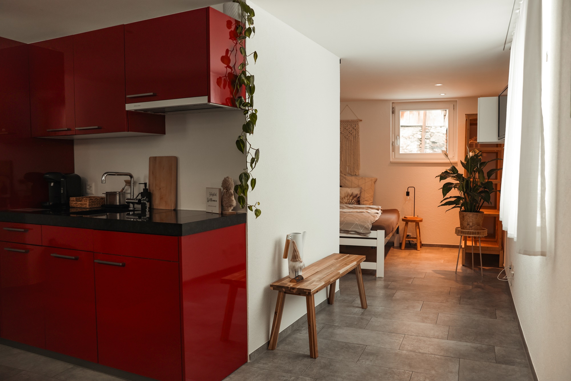 Das moderne Studio befindet sich mitten im Dorfkern von Malans an ruhiger Lage. Zum Studio steht ein abschliessbarer Raum für Velos, Skis oder andere Sportgeräte zur Verfügung. Schlafzimmer