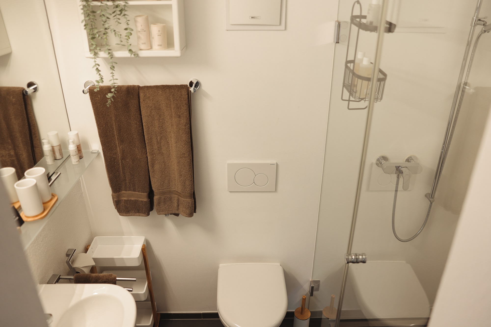 1 Badezimmer mit Dusche/WC und Haartrockner Wohnzimmer