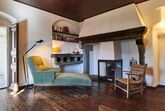 Sonstige Wohnzimmerausstattung: Das Wohnzimmer befindet sich im ersten Stock und wurde mit einem Sofa, Sesseln und einem Tischchen ausgestattet.