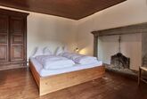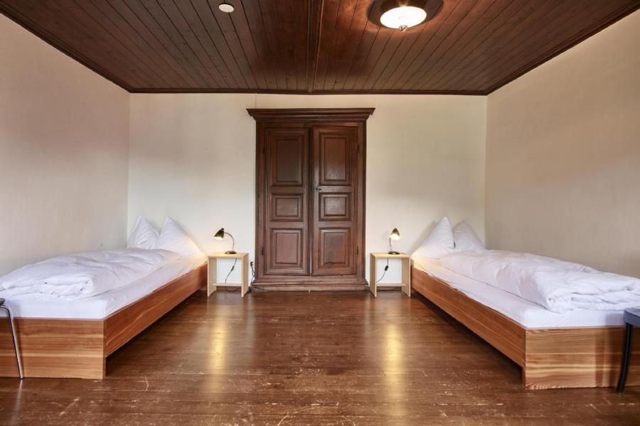 Sonstige Schlafzimmereinrichtung: Im zweiten Obergeschoss gibt es drei Schlafzimmer. Eines ist mit einem Doppelbett und zwei mit je zwei Einzelbetten ausgestattet. Die beiden hinteren Zimmer sind «gefangen», bzw. nur über die Loggia erreichbar.