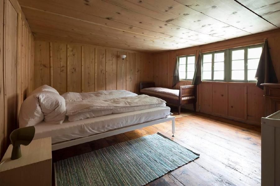 Anzahl Personen 4-8: Es ist ein Babybett (bis 2 Jahre) vorhanden. Das Haus bietet Platz für vier bis acht Gäste (plus Baby). Das Haus kann von beiden Lauben betreten werden. Diese führen direkt in die hohe Rauchküche mit angrenzender sehr modernen Küche. Von der Rauchküche ab geht es in die gemütliche Essstube und das dahinterliegende Stipli (kleine Nebenstube) mit bequemem Sofa. Ebenfalls von der Rauchküche weg führt ein kleine Treppe in ein Doppelzimmer. Eine steile Treppe führt in das 2. Stockwerk. Dort finden sich drei Doppelschlafzimmer und ein Badezimmer mit Dusche/WC. Auf der Ostlaube im Erdgeschoss findet sich zusätzlich ein separates WC. Das Haus kann auch nur für vier Personen gemietet werden und wird dadurch kostengünstiger. Die Böden sind aus Holz deshalb empfehlen wir gute Hausschuhe.