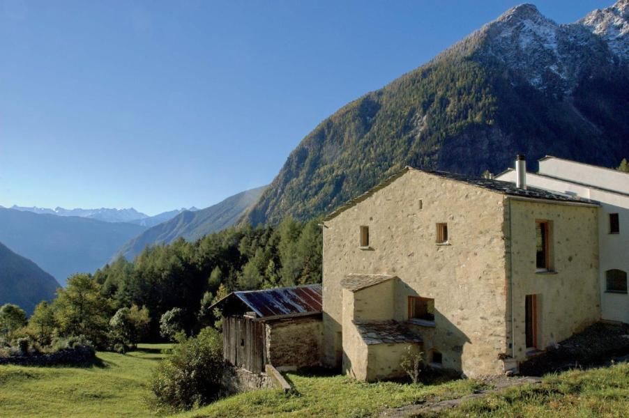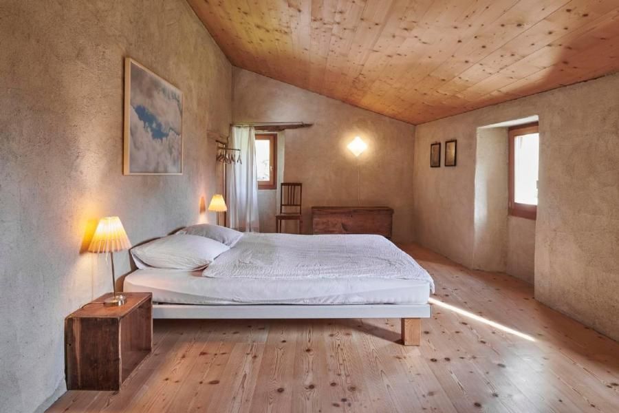 Sonstige Schlafzimmereinrichtung: Das Haus bietet Platz für 6 Personen. Neben den beiden Schlafzimmern im Dachgeschoss mit Doppelbett und zwei Einzelbetten verfügt die sog. «Stüva» im Hof über ein zusätzliches, kleines Doppelbett. Dieser Raum ist nur von aussen über die Terrasse zu erreichen. Angrenzend an das Schlafzimmer 1 befindet sich das Badezimmer.