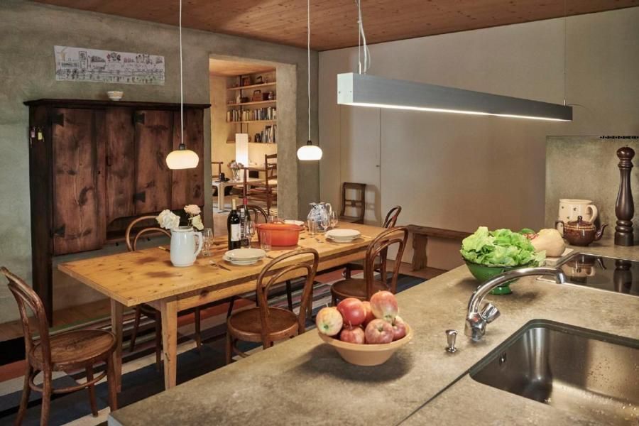 Anzahl Personen 6: Es ist ein Babybett (bis 2 Jahre) vorhanden. Das Haus bietet Platz für sechs Gäste (plus Baby). Das Haus ist vom Garten her zugänglich, da es an leichter Hanglage (terrassiert) steht. Sie betreten direkt die Küche. Im 1. Stockwerk befindet sich auch die kleine Stube, welche direkt von der Küche zugänglich ist. Eine Treppe führt ins 2. Stockwerk, wo sich zwei Doppelzimmer und ein Badezimmer befinden. Ausserhalb des Hauses in der vom Garten zugänglichen Stüva findet sich nochmals ein Doppelzimmer. Die Natur und Tierwelt sind hier sehr nah, manchmal trappeln die nachtaktiven Tiere übers Dach der Stüva. Die Böden bestehen aus Holz, weshalb wir gute Hausschuhe empfehlen.
