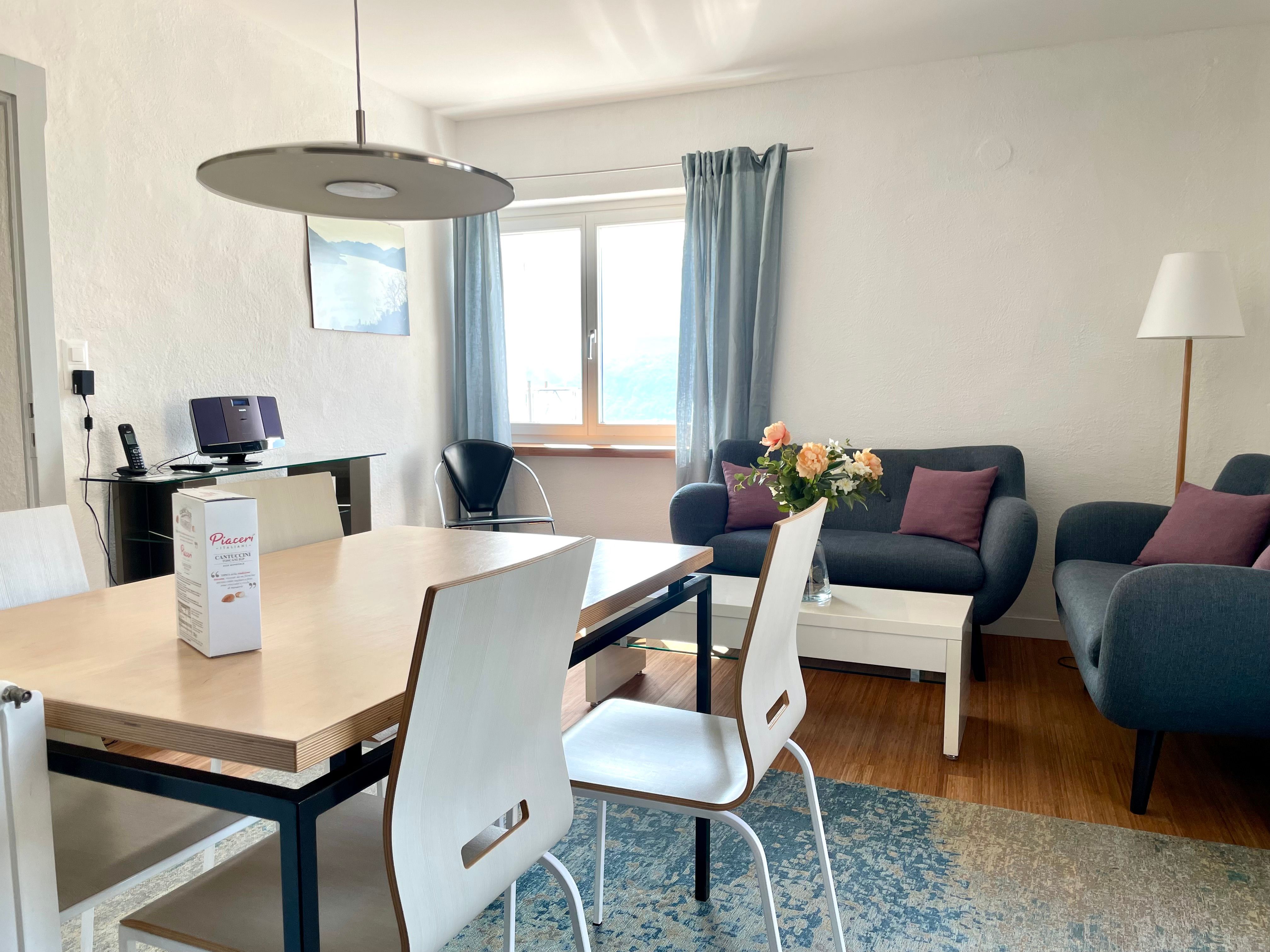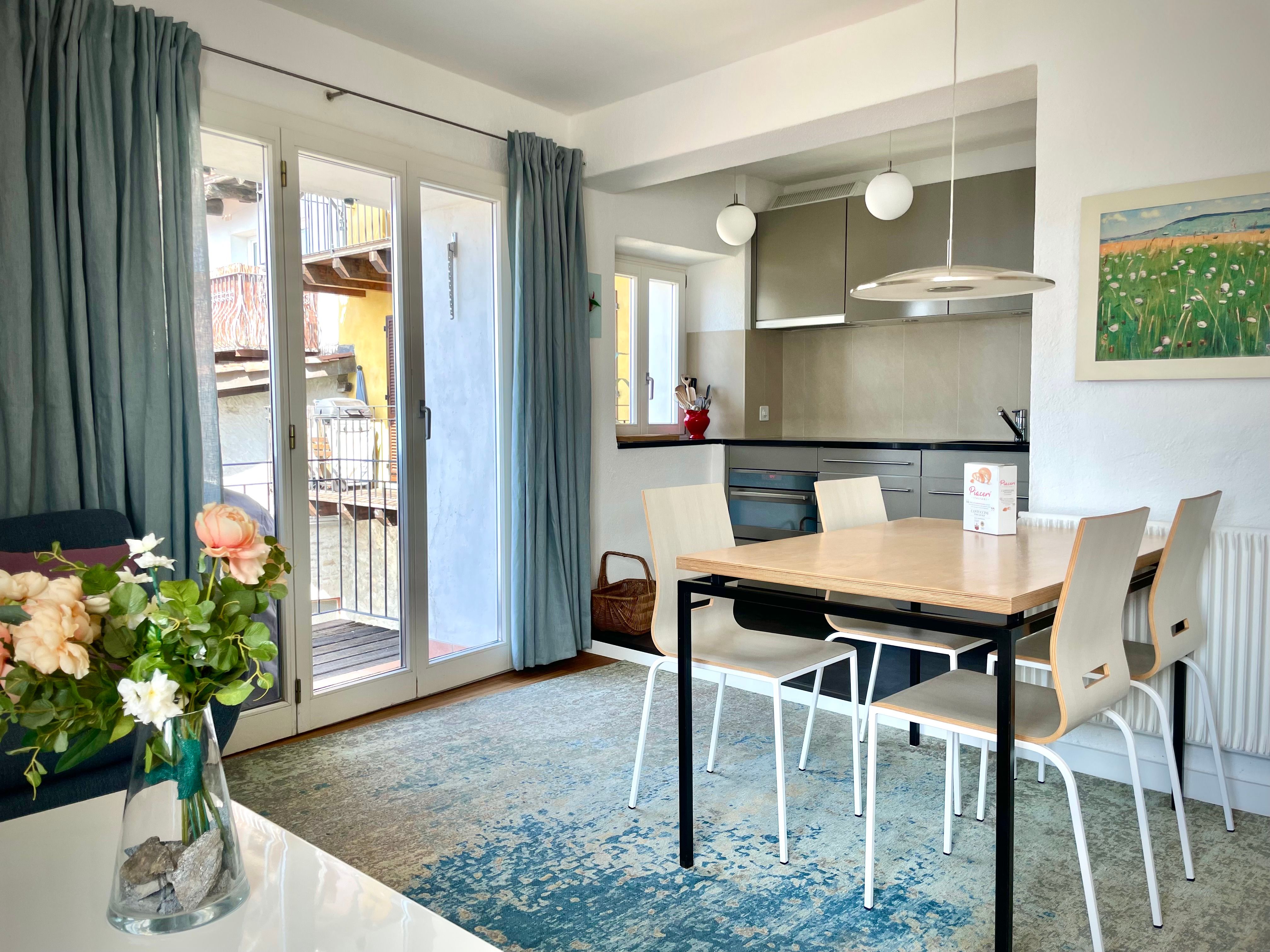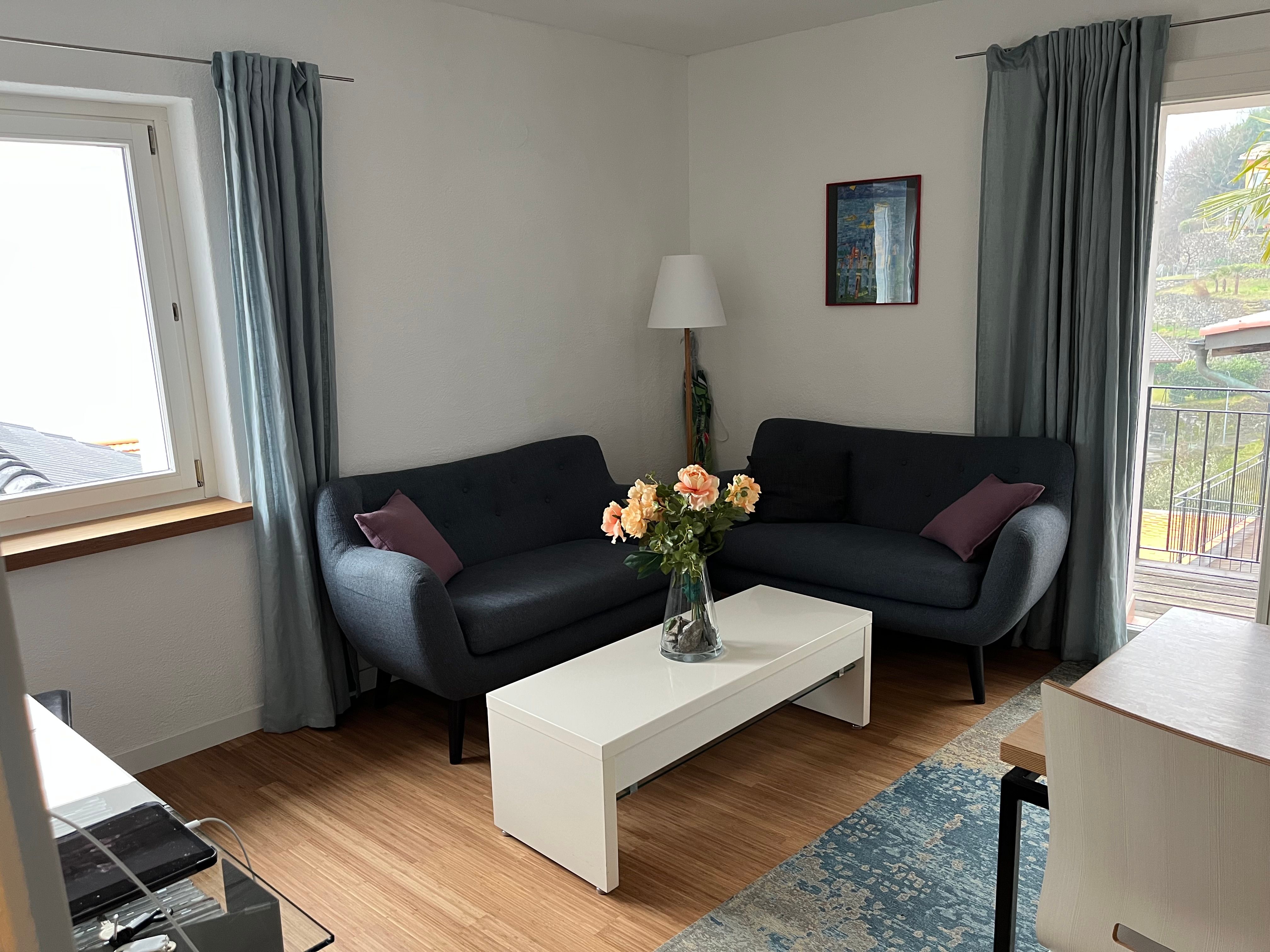 Im Casa Beatrice hat es 3 Wohnungen. EG ist privat vermietet; 1. OG für Dauermieter; 2. und 3. OG Ferienwohnung. 3 Zimmer Maisonette Wohnung in Ronco s/Ascona mit sehr schönem Blick auf den Lago Maggiore und die Brissago-Inseln. Zentrale Lage, sehr ruhig und sonnig. Mit Balkon. Das Haus ist über eine Treppe von za. 3 Meter erreichbar. Die 3 Zimmer-Ferienwohnung (ca. 75qm) ist über 2 Etagen: 1. Etage: offene Küche mit Esstisch, kleine Sitzgruppe mit Salontisch; Kabel TV/Radio/Telefon; kleiner Balkon mit Seesicht; 1 Doppelzimmer; Dusche mit WC. Die 2. Etage ist über eine Wendeltreppe erreichbar. Im Wohn-Schlafzimmer befindet sich ein französischen Bett und eine Wohnecke mit Fernseh. Die Wohnung ist für Leute mit Gehe-Schwierigkeiten nicht geeignet. Die Wohnung kann für maximal 4 Personen gemietet werden.