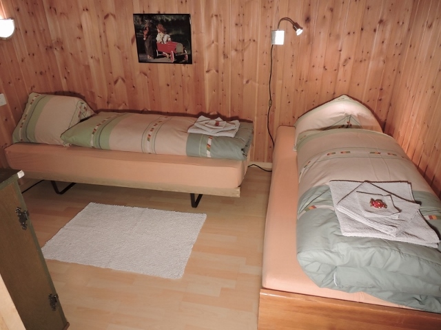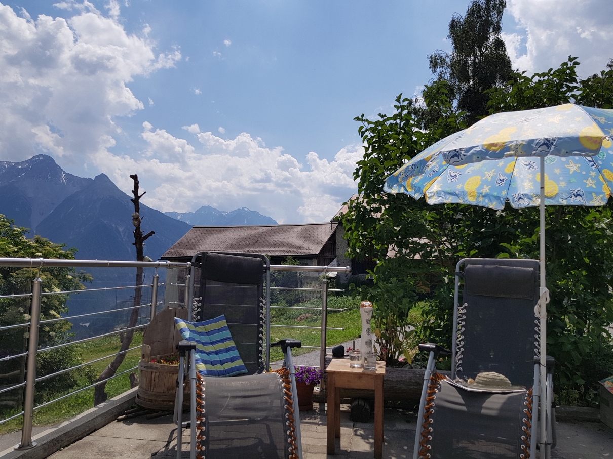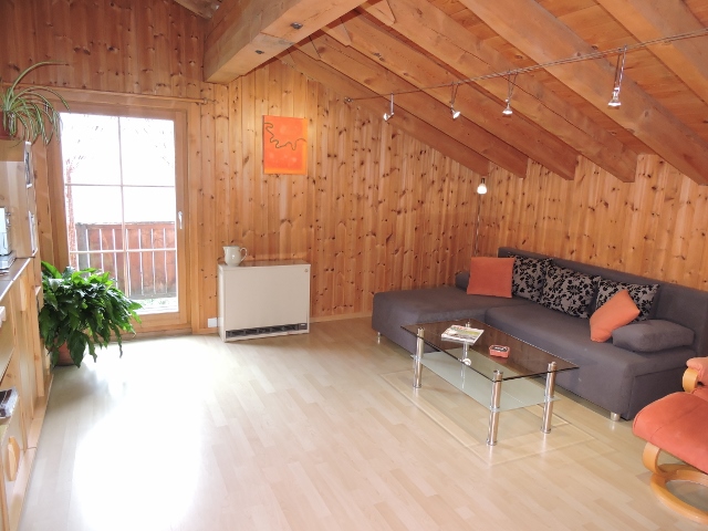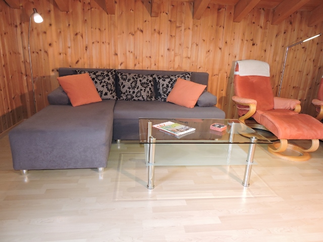 Tolle*** 4 Zimmerwohnung mit Holz verkleidet, Parkettböden und Süd-Balkon, PP vor dem Haus. Ruhige, sonnige Lage mit grandioser Aussicht auf Berge und Tal. Im Wohnzimmer finden Sie: Sat-TV, DVD-Player, Leseecke mit Romane, Sach-und Kinderbücher, Kinder und Gesellschaftsspiele und viele Spielsachen für die Kleinen. In der Küche finden Sie einen grossen ausziehbaren Tisch, ein Glaskeramikherd mit Backofen, Kühlschrank mit Gefrierfach, Abwaschmaschine. Eine Nesspresso-Kaffeemaschine, Wasserkocher, Toaster, Raclette-und Fondueofen, Mixer, Radio und Geschirrtücher und vieles mehr. Badezimmer mit Bad-Duche, 2 Lavabos, grosser Spiegelkasten, Haartrockner und je Person eine Frotteegarnitur. Die Betten sind bei Ankunft bezogen. Vor dem Haus auf der Terrasse hat es ein Sandkasten mit Spielsachen, ein Gasgrill, Tisch und Stühle und 2 Liegen. Für die Velos, Skier usw. stellen wir gerne unseren Holzschopf zur verfügung.