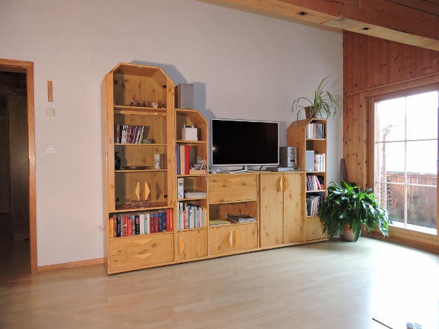 Tolle*** 4 Zimmerwohnung mit Holz verkleidet, Parkettböden und Süd-Balkon, PP vor dem Haus. Ruhige, sonnige Lage mit grandioser Aussicht auf Berge und Tal. Im Wohnzimmer finden Sie: Sat-Tv, DVD-Player, Leseecke mit Romane, Sach-und Kinderbücher, Kinder und Gesellschaftsspiele und viele Spielsachen für die Kleinen. In der Küche finden Sie einen grossen ausziehbaren Tisch, ein Glaskeramikherd mit Backofen, Kühlschrank mit Gefrierfach, Abwaschmaschine. Eine Nesspresso-Kaffeemaschine( auf Wunsch auch Filterkaffeemaschine), Wasserkocher, Toaster, Raclette-und Fondueofen, Mixer, Radio und Geschirrtücher und vieles mehr. Badezimmer mit Bad-Douche, 2 Lavabos, grosser Spiegelkasten, Haartrockner und je Person eine Frotteegarnitur. Die Betten sind bei Ankunft bezogen. Vor dem Haus auf der Terrasse hat es ein Gasgrill, Tisch und Stühle und 2 Liegen. Für die Velos, Skier usw. stellen wir gerne unseren Holzschopf zur verfügung.