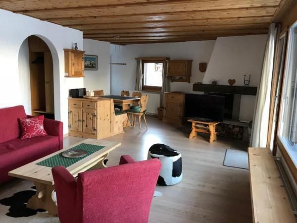 Komfortable 3 1/2- Zimmer-Wohnung, renoviert Herbst 2017 bzw. 2019! 1. Stock. Wohn – Esszimmer und Elternschlafzimmer in Arvenholz, Cheminée. Zweites Schlafzimmer ebenfalls in Arvenholz mit Etagenbett. Ost – Süd – West besonnt mit grossem Balkon und Blick Richtung Silsersee. Teils offene Küche mit Fenster und Dampfabzug, Geschirrspüler, Glaskeramikherd. 2 Nasszellen mit WC und Bad, respektive Dusche. Nähe Einkaufsladen und LL-Loipen.