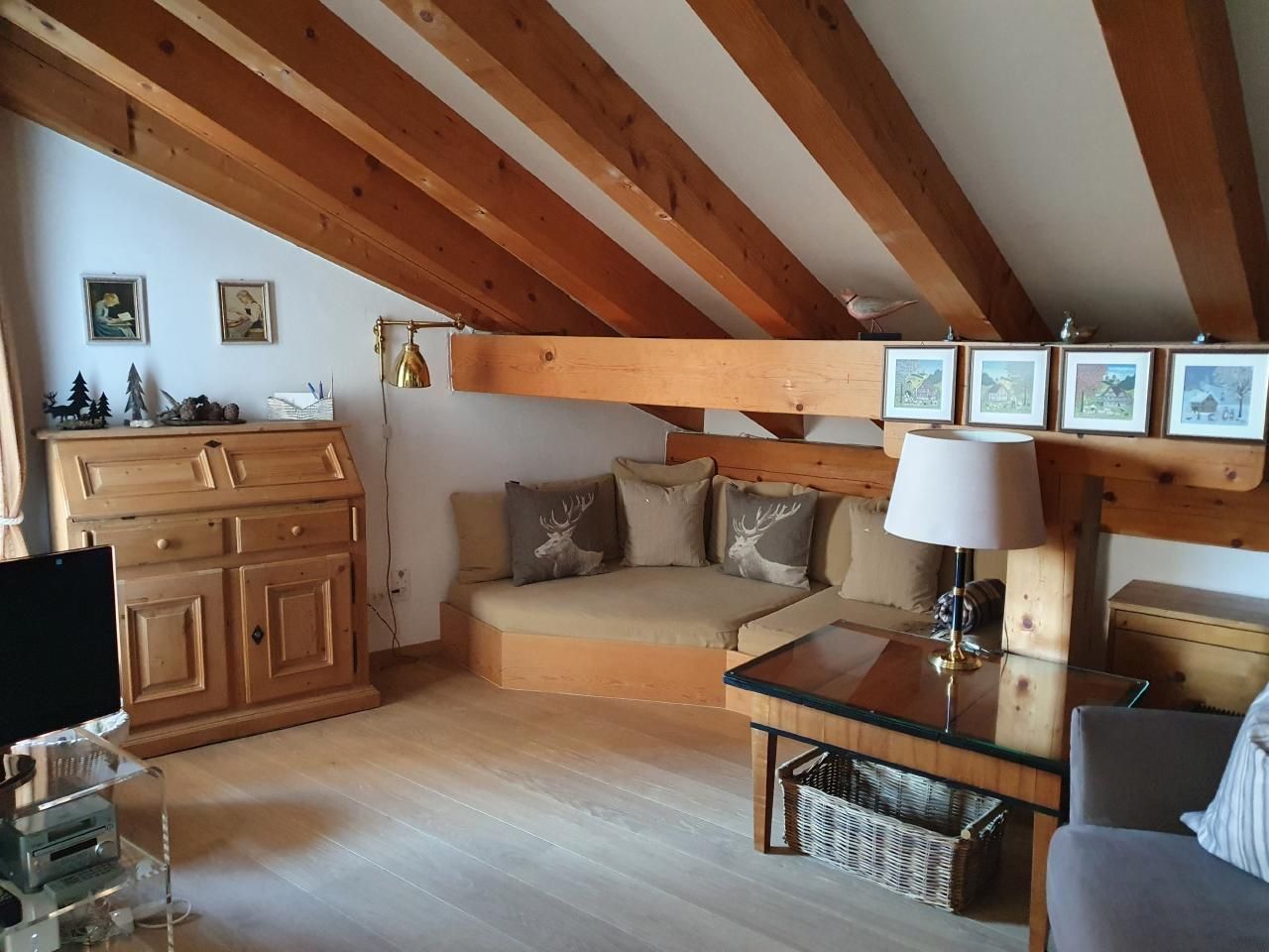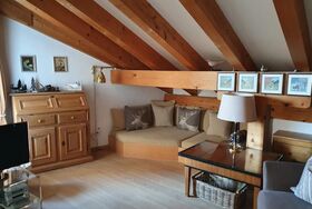 Entdecken Sie unser heimeliges Juwel unter dem Dach: eine exzellente Dachwohnung, die mit ihren sichtbaren Dachbalken und einer stilvollen, makellosen Einrichtung besticht. Genießen Sie die einzigartige Kombination aus Gemütlichkeit und Eleganz, die Ihren Aufenthalt unvergesslich macht. Dieses Refugium verspricht eine Auszeit vom Alltag in einer Atmosphäre, die sowohl inspirierend als auch entspannend wirkt.