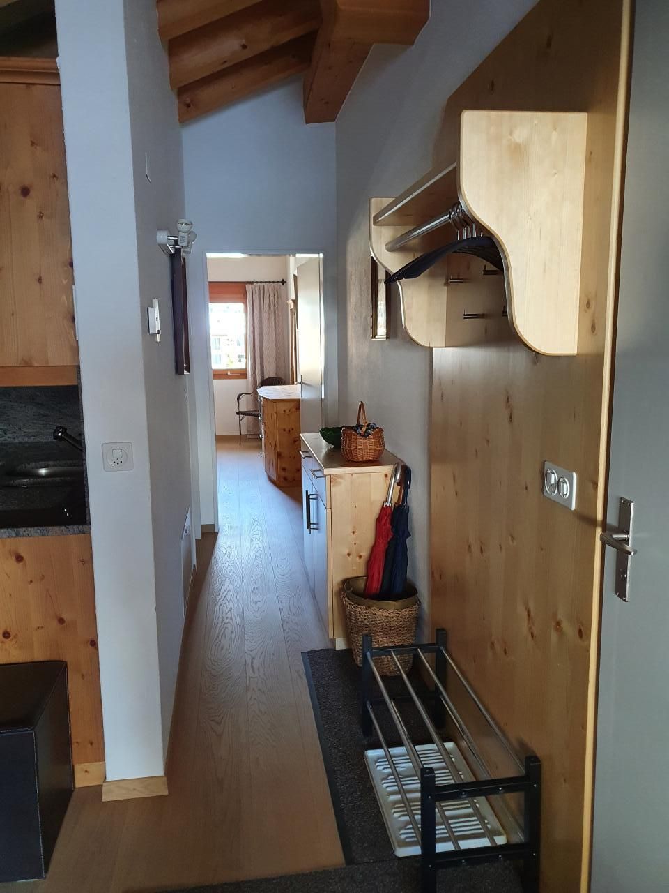 Ihnen erwartet Sie ein komfortables Schlafzimmer, komplett aus Arvenholz gefertigt, das mit einem Doppelbett und zwei einzelnen Matratzen für Ihren Schlafkomfort ausgestattet ist. Der große, eingebaute Holzschrank bietet reichlich Stauraum. Die Küchennische ist bestens ausgestattet mit einem neuen Kühlschrank, inklusive Tiefkühlabteil, Backofen, Geschirrspüler und einer bewährten Filter-Kaffeemaschine, sowie eine Nespresso-Kapseln kompatible. Selbstverständlich sind Salz, Pfeffer, Öl und Weiteres vorhanden, um das Kochen so angenehm wie zu Hause zu gestalten. Das Bad verwöhnt mit einer Badewanne und einer Duscheinrichtung, perfekt, um sich nach einem ereignisreichen Tag zu entspannen.