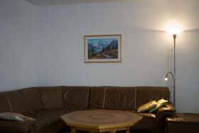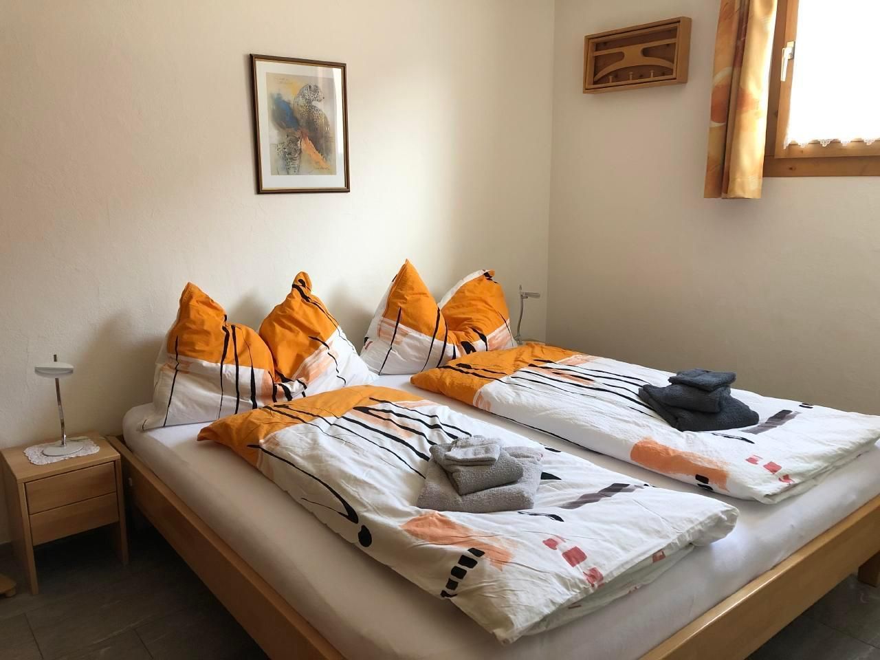 Willkommen in der idyllischen 3.5-Zimmer-Wohnung im Erdgeschoss, die mit ihrer ruhigen Lage und dem Gartensitzplatz Erholung pur verspricht. Die Inneneinrichtung überzeugt durch ein gemütliches Wohn-/Esszimmer, möbliert mit einheimischen Arvenholzmöbeln, einer großzügigen Sitzgruppe und einem einladenden Cheminée für gemütliche Abendstunden. Den modernen Komfort komplettieren kostenloses WLAN und ein TV mit Radio.