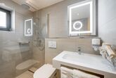 Vorraum, Badezimmer mit Dusche, Waschtisch und WC. Kabel TV (Flat TV), Radio, Telefon, Haarföhn, Balkon, Bergseite, Safe, selbstverständlich komplett mit Bettwäsche und Handtücher und WLAN. Größe: ca. 41 m².