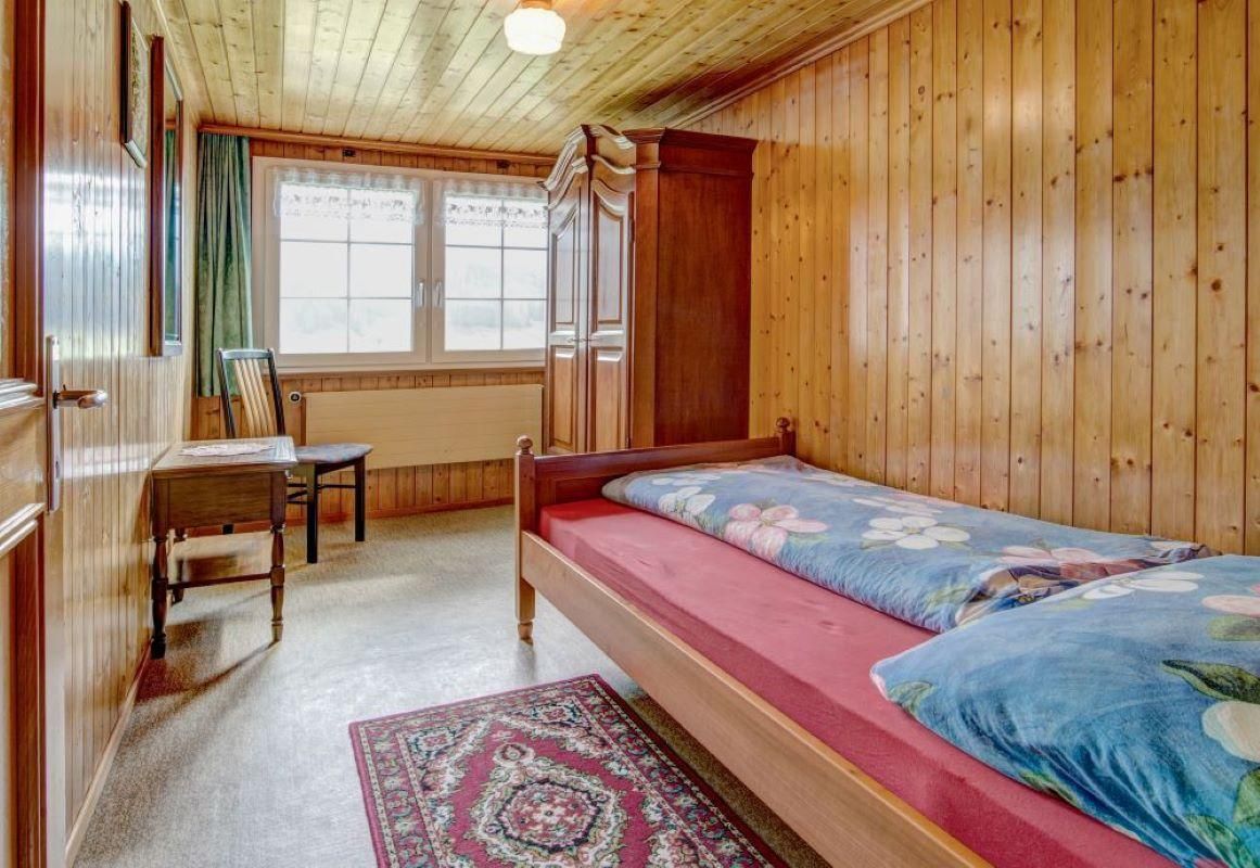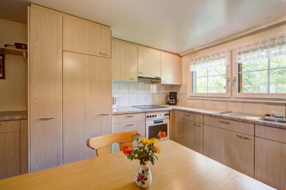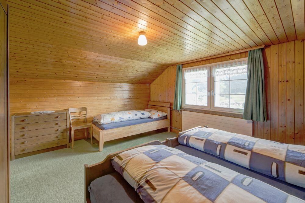 Unsere großzügige 5 ½ Zimmer-Ferienwohnung, verteilt über das 2. und 3. Stockwerk, bietet ausreichend Raum für bis zu 7 Personen. In der liebevoll eingerichteten Wohnung finden Sie alles, was Sie für einen komfortablen Aufenthalt benötigen, einschließlich eines Wohnzimmers mit Ausziehtisch, Eckbank, Stühlen, TV, CD-Player, einer Wohnwand, Buffet sowie verschiedene Spiele und Lesestoff. Die Küche ist mit modernen Annehmlichkeiten wie einem Eierkocher, Toaster, Radio, Geschirrspüler und Kaffeevollautomat ausgestattet, während das Schlafzimmer einen Kleiderschrank und eine Kommode mit Spiegel bietet.