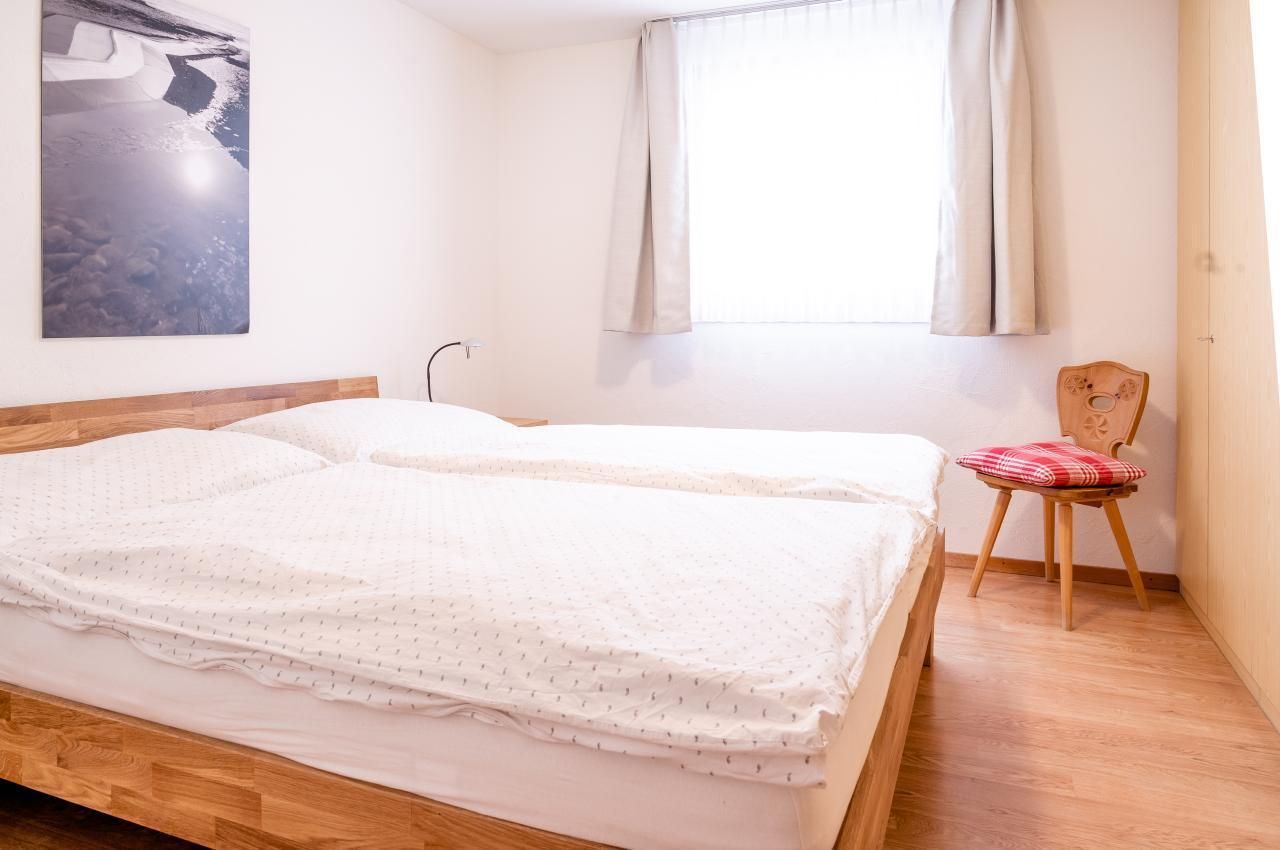 Das Schlafzimmer verfügt 2 Einzel-Betten mit grossem Einbauschrank mit viel Stauraum.