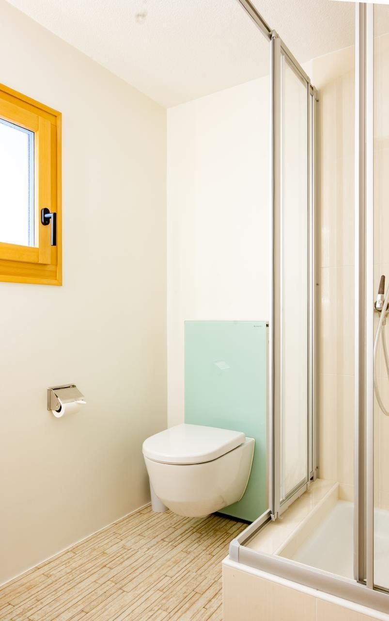 Dusche/WC sind komplett neu gestaltet. Im Eingangsbereich ist eine Garderobe mit angrenzendem Putzschrank.