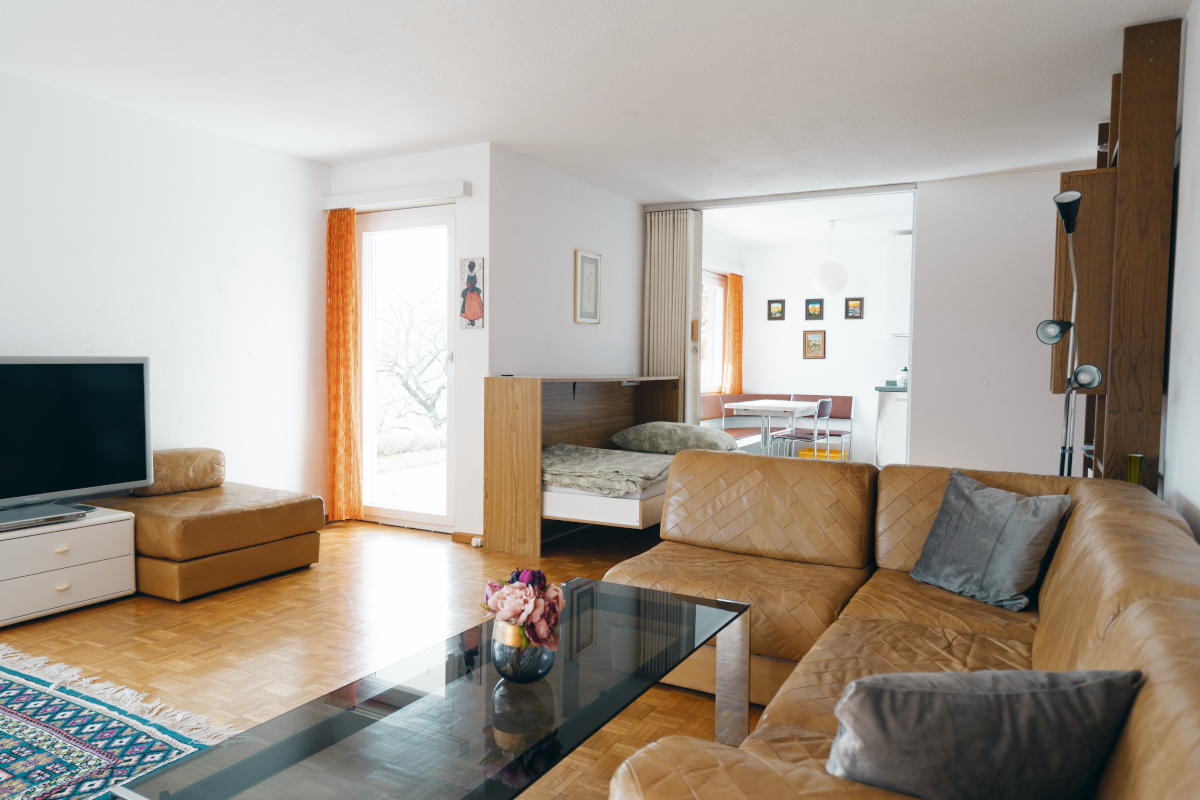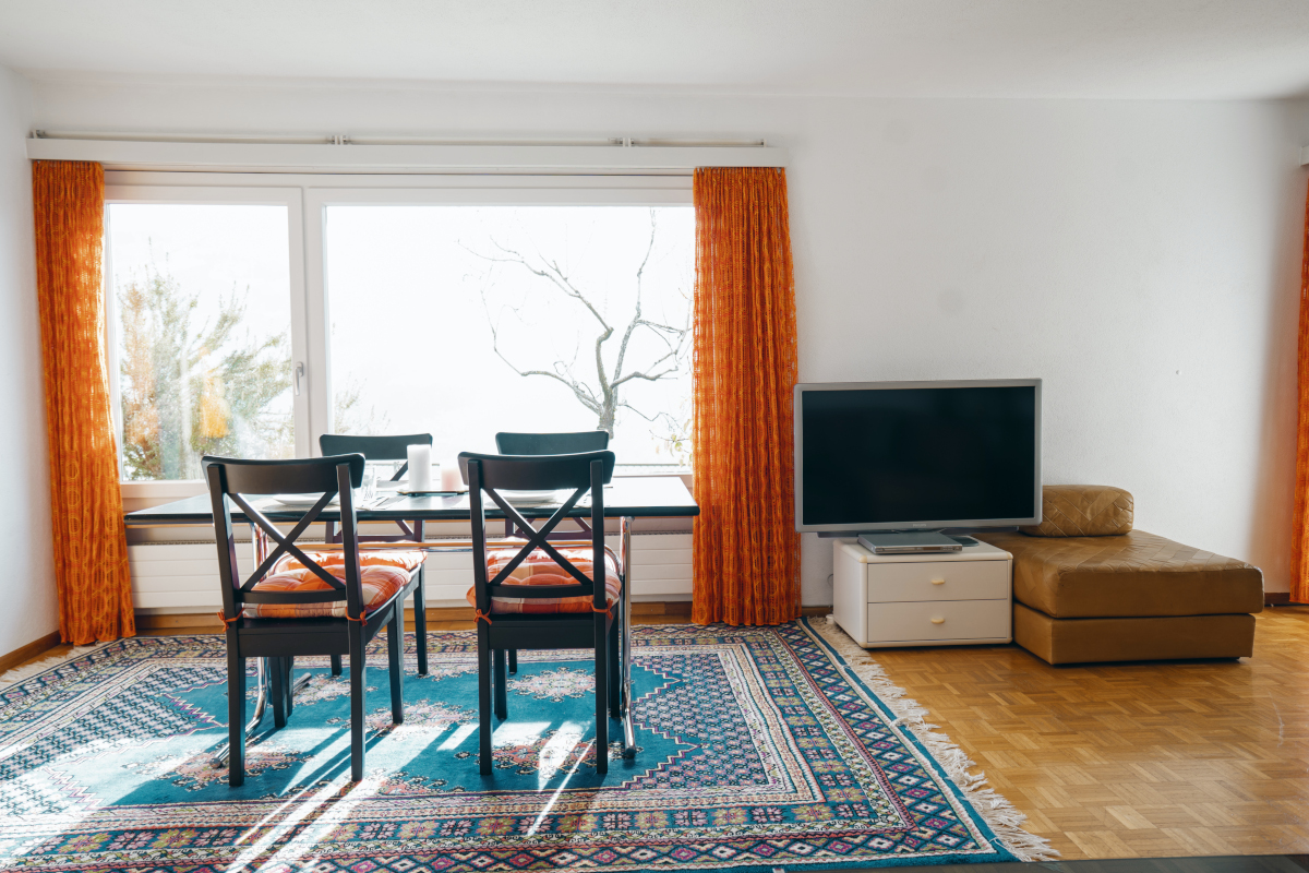 Nichtraucherwohnung, rauchen ist nur auf dem Gartensitzplatz erlaubt. Zugang nicht behindertengerecht (Treppe). Vermieter betreten Gartensitzplatz zwecks Verrichtung von Gartenarbeiten regelmässig. Alle Nebenkosten (Elektrisch, Wasser, Heizung, TV, Internet) sowie Küchen- und Frotteewäsche sind inbegriffen. Bettwäsche CHF 15.00 pro Person und Wechsel.