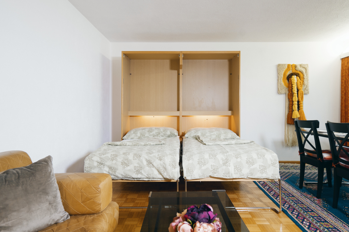 Die schöne helle 1½-Zimmer Wohnung mit Baujahr 1969 bietet maximal 3 Personen gemütliche Schrankbetten (Betten sind mind. 90x190) an. Neue moderne Küche mit separater Essecke, ausgestattet mit Glaskeramik-Kochherd, Kühlschrank, Backofen und Geschirrspüler sowie allen notwendigen Küchenutensilien, Geschirr, Essbesteck Gläser usw. Grosses Wohnzimmer (32 m2) mit bequemer Polstergruppe, Esstisch, TV, Internet Anschluss, Ausgang zu gedecktem Gartensitzplatz mit Gartentisch und Grill. Moderne (neue) Dusche / WC. Einmalige Aussicht auf den Walensee und die Berge. Ruhige Lage an der Hauptstrasse zwischen Weesen und Amden, auch im Winter gut erreichbar, eigener Parkplatz, Bushaltestelle in unmittelbarer Nähe, ca. 5 Autominuten bis Autobahnanschluss Weesen.
