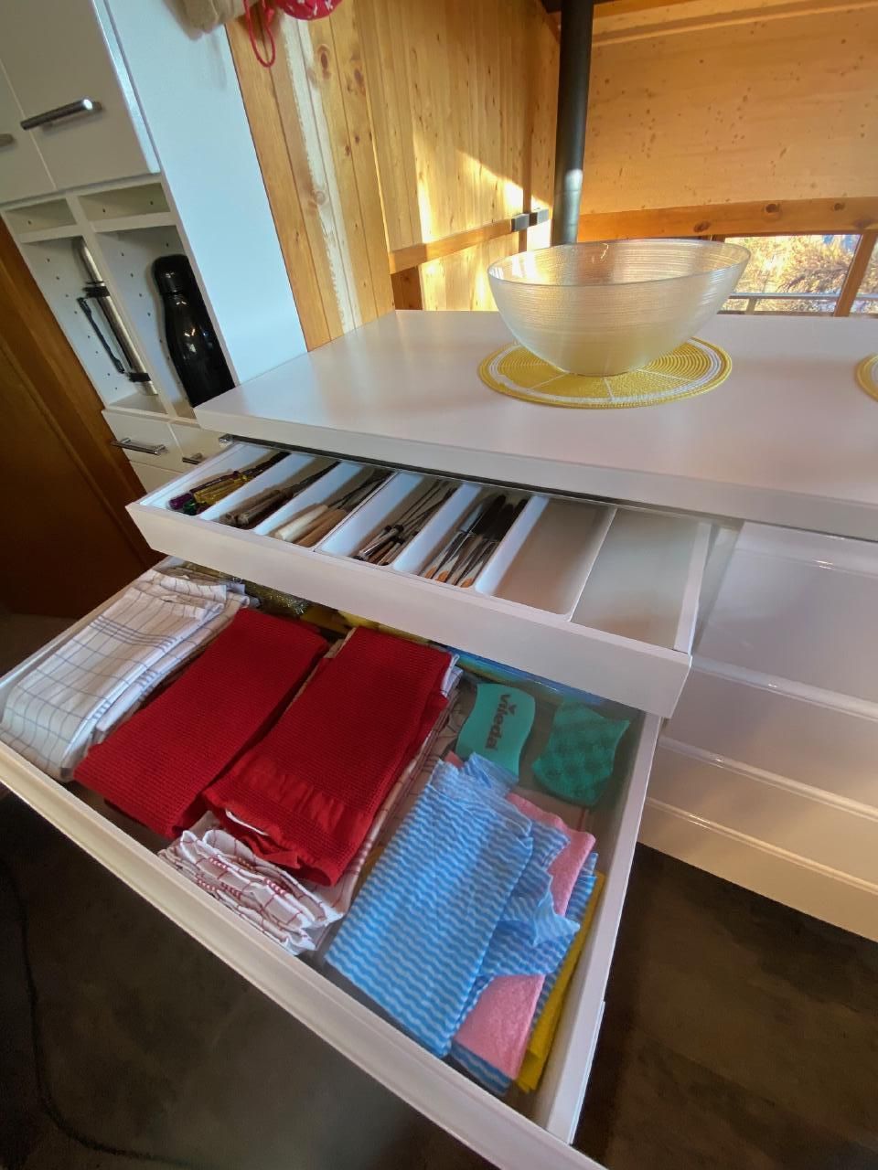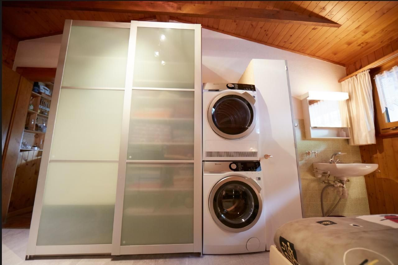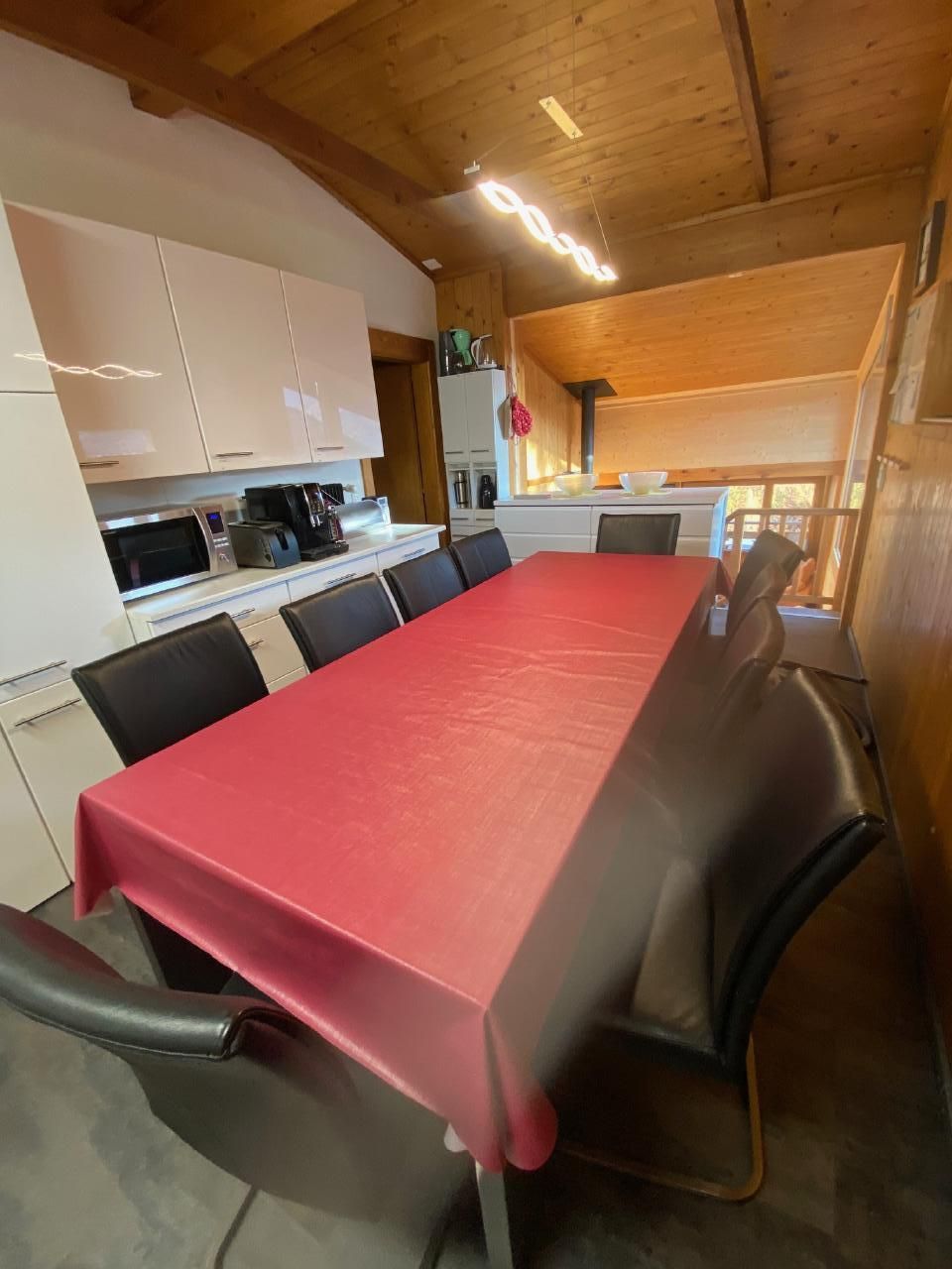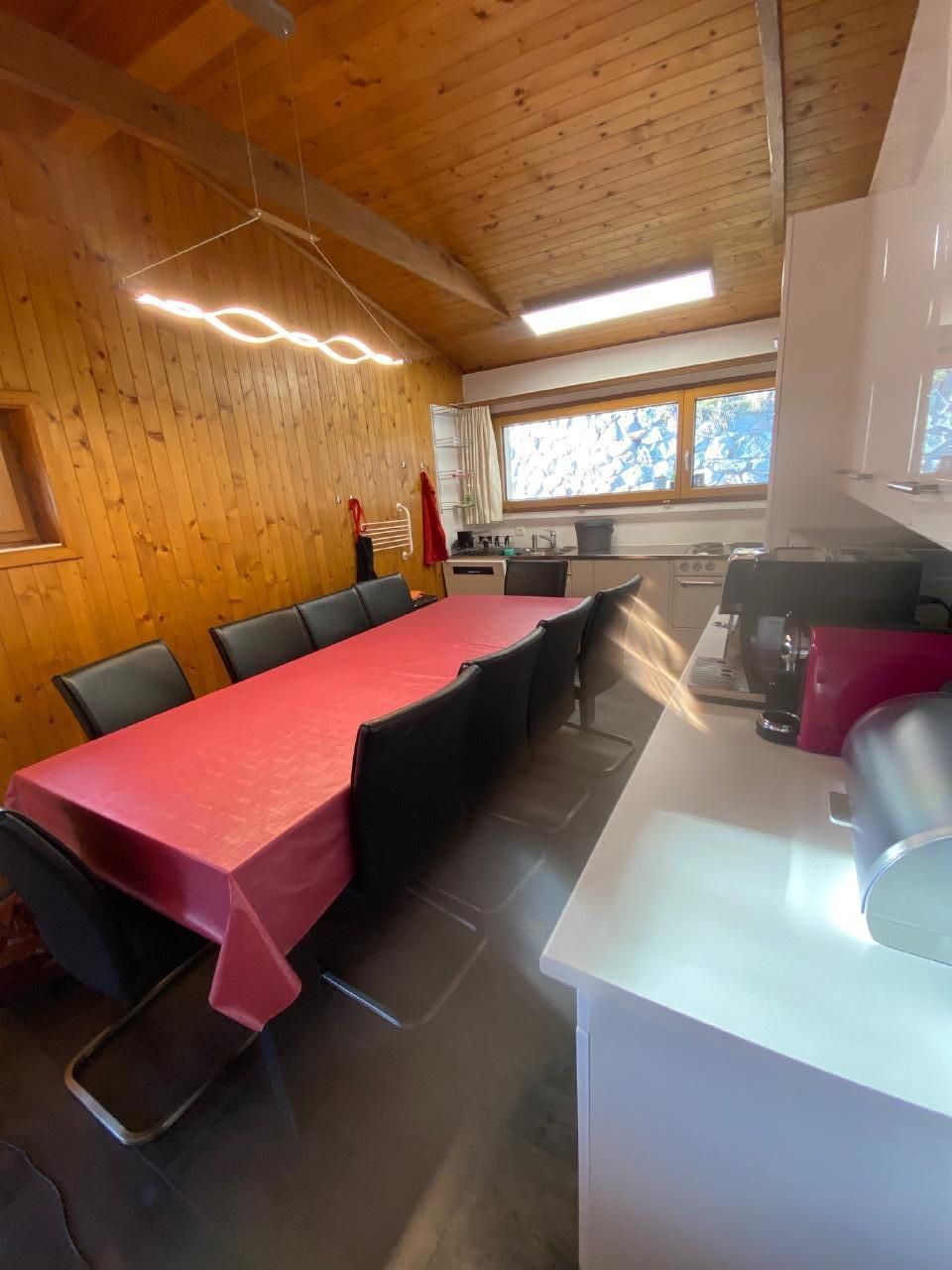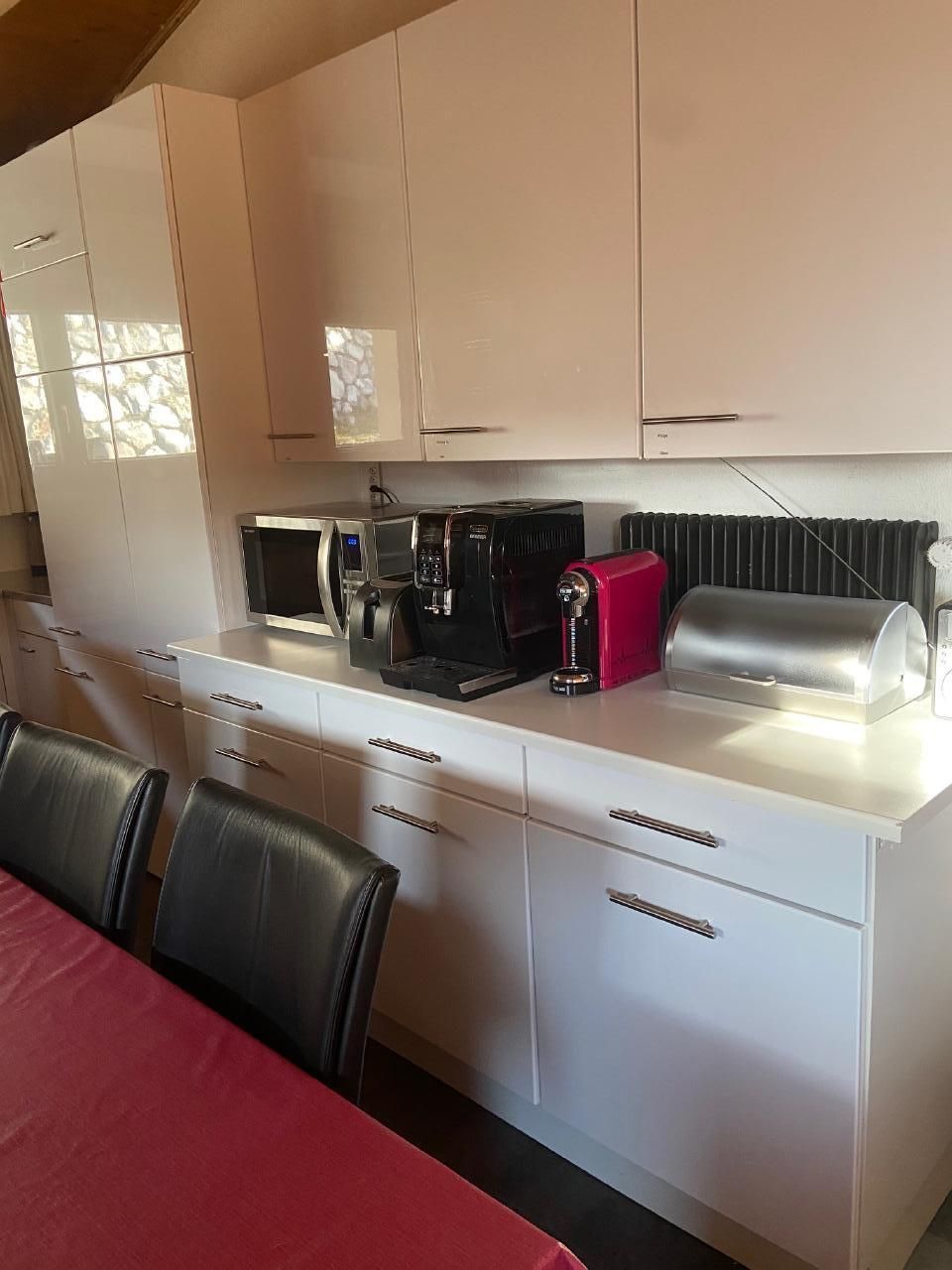 Sonstige Kücheneinrichtung: Geschirrspüler, 2xRacletteausrüstung, 2xKäse-Fondue-Ausrüstung, Fleischfondue-Ausrüstung, viele Pfannen, davon einige Gross-Kochtöpfe, Kaffee-Vollautomat de Longhi mit Milchschäumer, Kapsel-Kaffeemaschine (Nespresso-taugliche Kapseln) und Filter-Kaffeemaschine, Digitalradio-Empfänger DAB+, u.v.a.m.