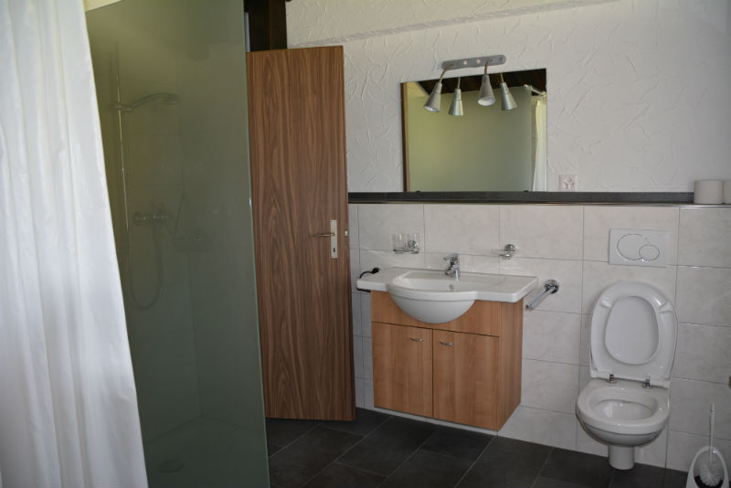 1 Badezimmer mit Badewanne und separate Dusche, Doppellavabo mit Spiegelschrank und Lavabounterschrank und WC. 1 Badezimmer mit grosser Dusche, Lavabo mit Unterschrank und WC. Badezimmerwäsche ist vom Mieter mitzubringen oder kann auf Wunsch für CHF 10.- pro Person zur Verfügung gestellt werden. Andere Räume: