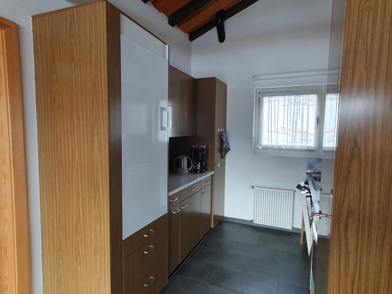 Separate Küche ausgestattet mit Geschirr für doppelte Anzahl Personen, Töpfe und Pfannen, Wasserkocher, Kaffeefiltermaschine, Raclette-Set, Fondue-Set, Mixer, Geschirrspüler, Backofen, Kühlschrank mit Kühlfach und Staubsauger. Küchenwäsche vorhanden und im Preis inbegriffen. Badezimmer