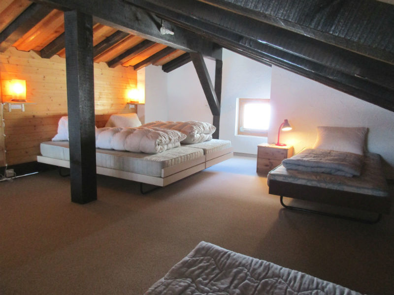 1 Doppelschlafzimmer mit 2 Matratzen 90x190, 1 Doppelschlafzimmer mit 2 Matratzen 90x200, Nachttische mit Nachttischlampen, Stühle für Kleiderablage und grossem Kleiderschrank. Galerieraum Doppelbett 90x190 mit Leselampen, ein Einzelbett 90x190.