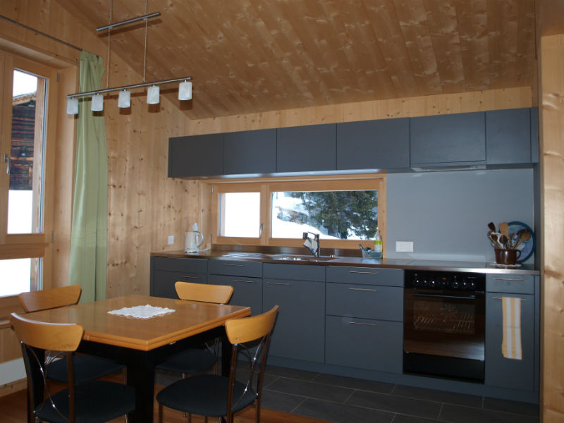 Essbereich sowie eine Sitzecke, Radio und WLAN. Die grossen Fenster bieten eine herrliche Aussicht in die unberührte Natur. Küche: