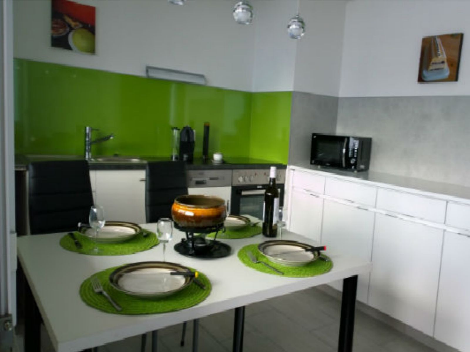 Frisch renovierte Küche mit Geschirrspühler, Backofen, Kühlschrank, Mikrowelle, Nespresso-Kaffeemaschine (Kapseln vorhanden) und allen gängigen Küchenmaschinen sowie zusätzlichem Essplatz. Küchenwäsche vorhanden und im Preis inbegriffen. Badezimmer: