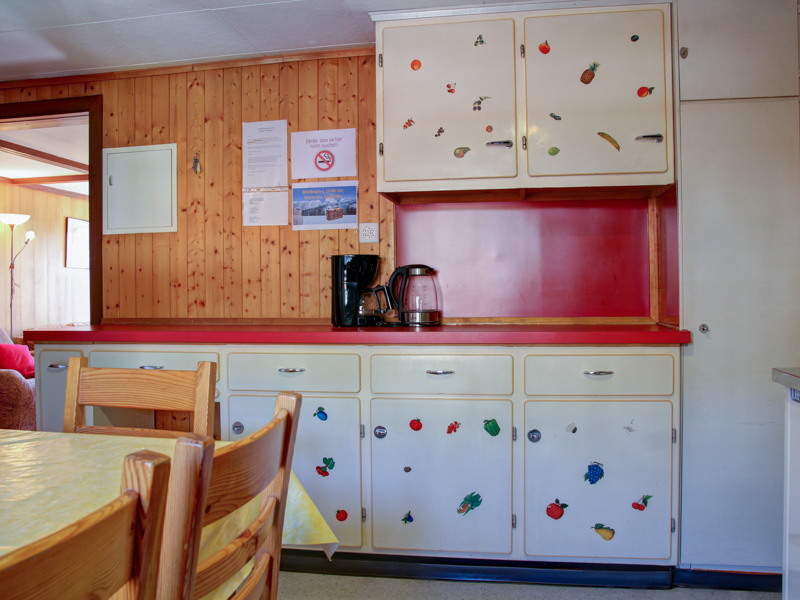 Gut ausgestattete Küche mit Kaffemaschine (Delizio Kapseln, wenige vohanden und im Preis inbegriffen), Backofen und Fondue-Set. Küchenwäsche vorhanden und im Preis inbegriffen. Badezimmer: