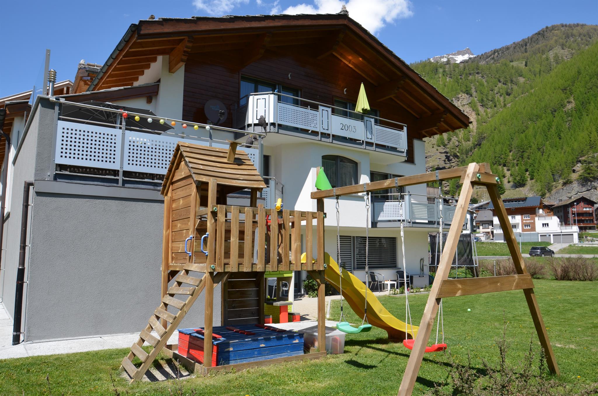 Das neue, moderne Einfamilienhaus liegt in sehr ruhiger und sonniger Lage mit einem wunderbaren Ausblick auf die Saaser Bergwelt. Die nächste Bushaltestelle oder die Talstation der Bergbahnen Hohsaas erreichen Sie in 1 - 3 Gehminuten. In näherer Umgebung befindet sich auch das Dorfzentrum mit verschiedenen Einkaufsmöglichkeiten. 50m vom Haus finden Sie eine Bäckerei mit immer frischen Brötchen. Ski- und Wandergebiet, Schlittelweg, Kunsteisbahn, Curling, Tennis, Fussballplatz und NEU: Beachvolleyballfeld befinden sich auch in der näheren Umgebung. Die Langlaufloipe führt direkt am Haus vorbei.