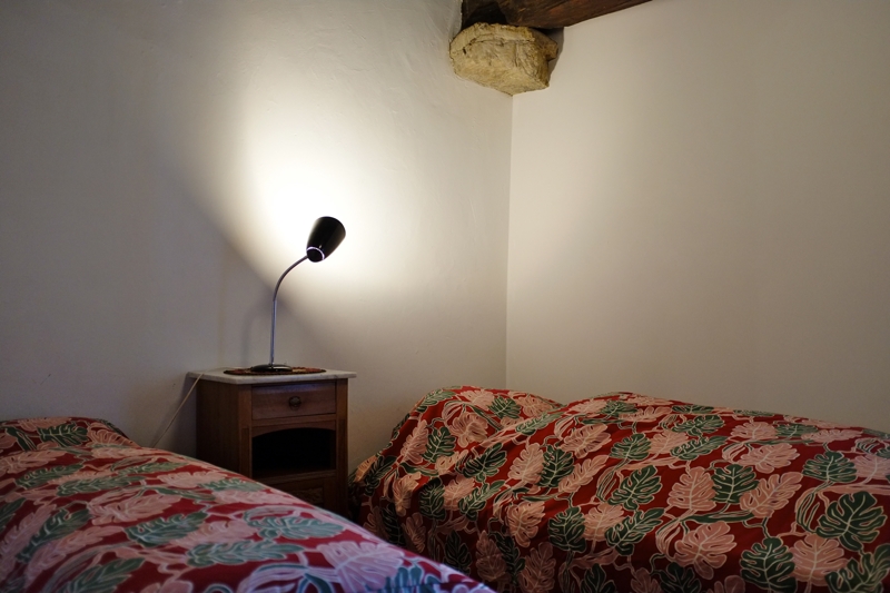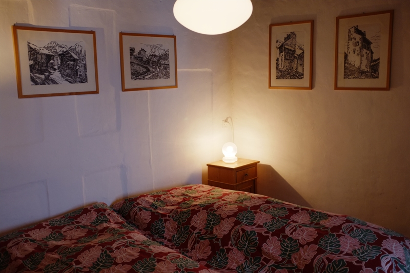 Die Wohnung ist auf zwei Stockwerke verteilt. Über eine Steintreppe (ca. 10 Tritte, eher steil) gelangt man zum Eingang der Wohnung, welcher im zweiten Stock liegt. Eine Holztreppe führt in den unteren Bereich (1. Stock) der Wohnung. Hier gibt es drei Schlafzimmern mit jeweils 2 Einzelbetten und genügend Abstellplatz. Bettwäsche vorhanden und im Preis nicht inbegriffen. Kindersitz sowie Kinder-Schlaf-Fixleintuch verfügbar und inbegriffen. Wohnzimmer: