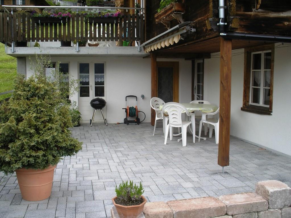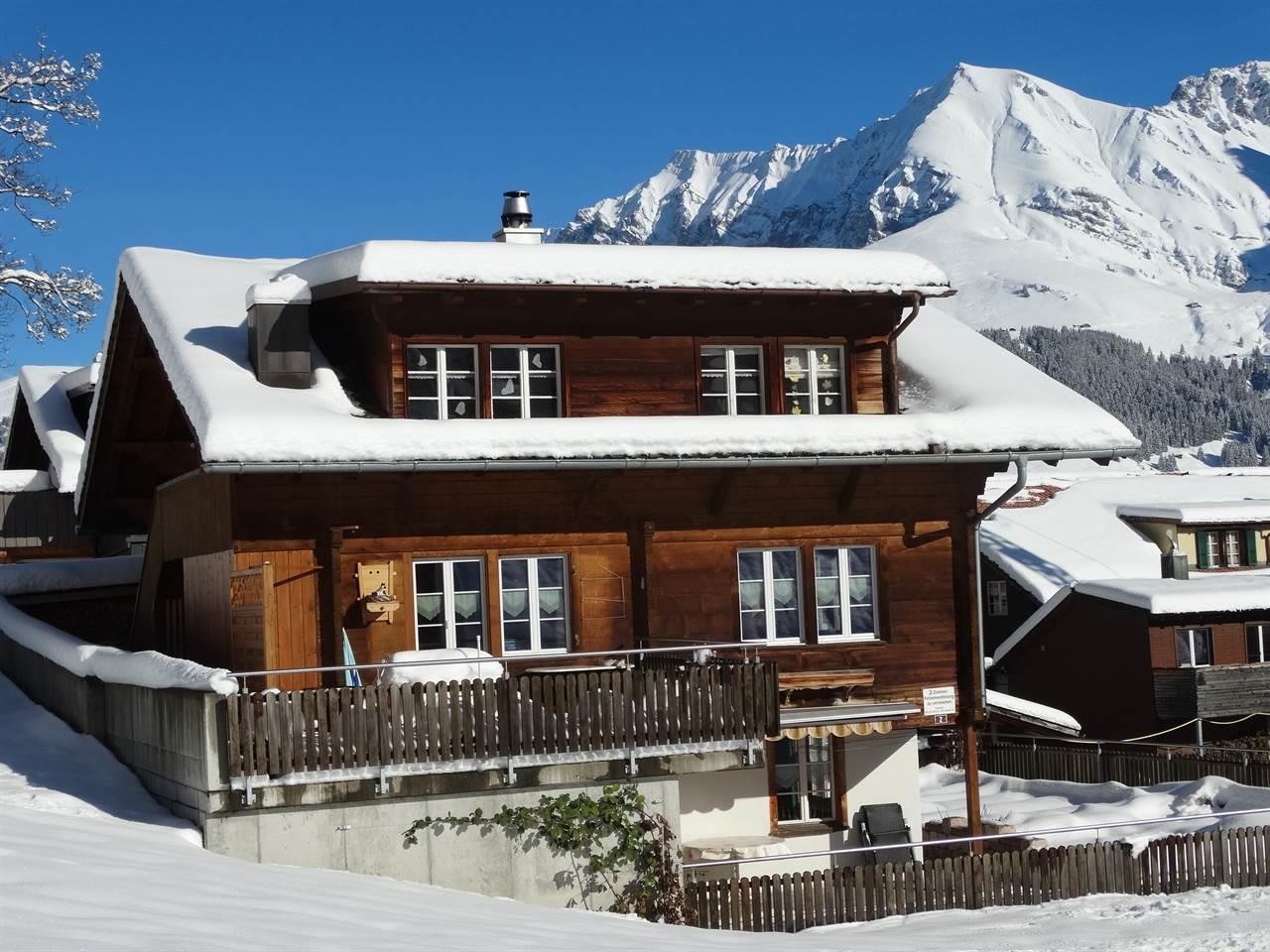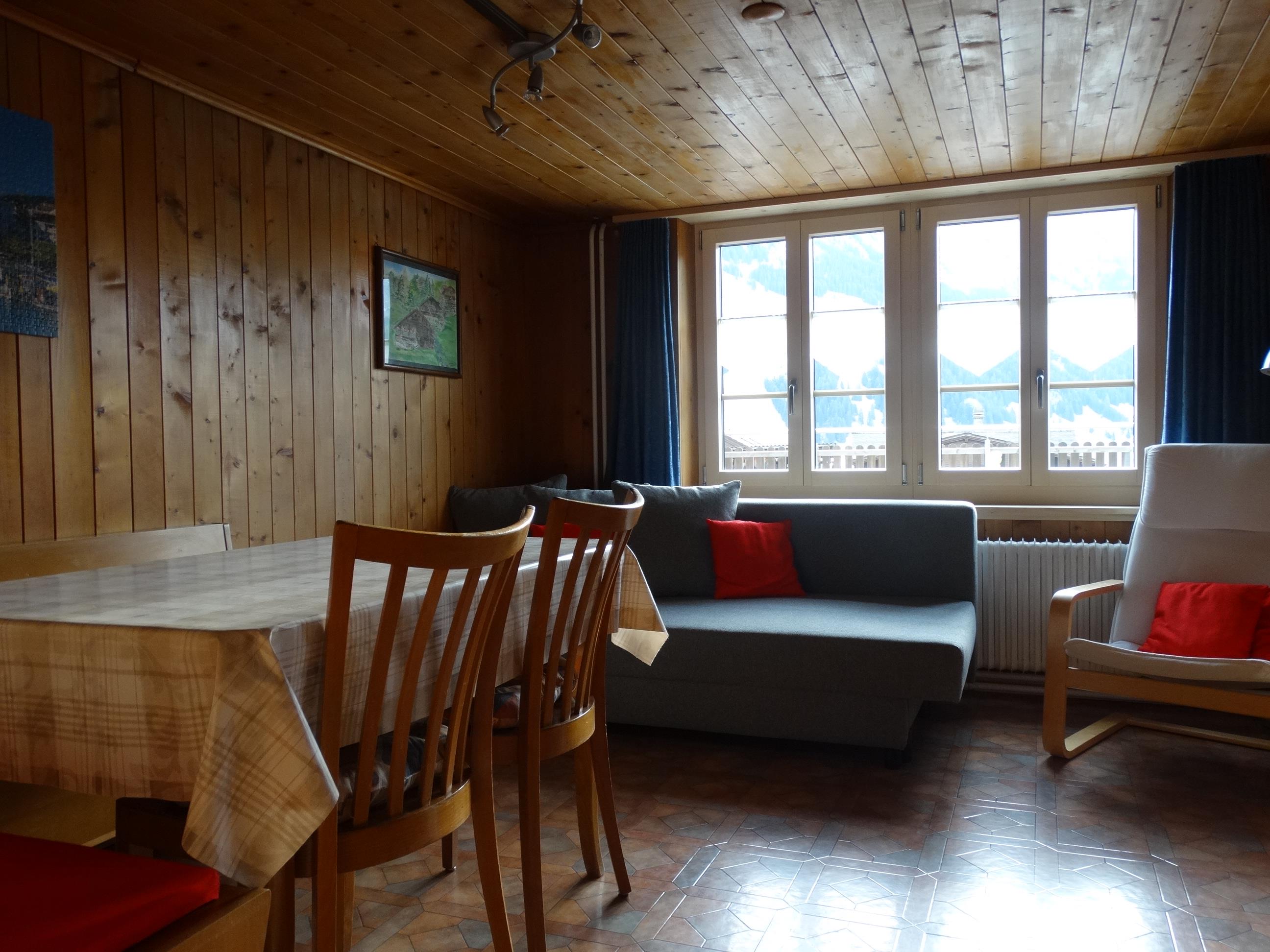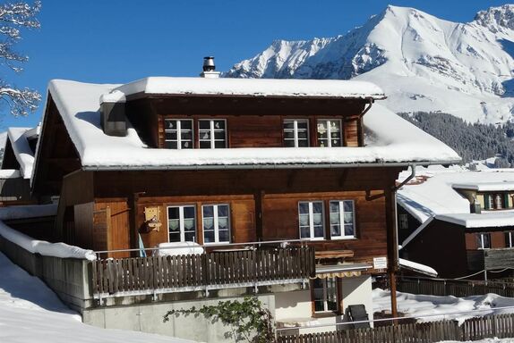 Sehr sonnige 2-Zimmerwohnung im Parterre eines 3-Familienchalets für 2 bis maximal 4 Personen. Das Haus liegt im Dorfzentrum von Adelboden und doch im Grünen. Wohnzimmer mit Essecke, Bettsofa für 1-2 Personen, Kabel-TV, WLAN, Radio, CD-Player. Neue, komplett eingerichtete Küche mit Glaskeramikherd, Backofen, Kühlschrank mit Gefrierfach, Kaffeemaschine, Wasserkocher, Fondue-Set und Raclette-Set. 1 Schlafzimmer mit Doppelbett (1.60 m) und Kleiderschrank, zwei zusätzliche Schlafgelegenheiten im Wohnzimmer (Bettsofa). Kinderbett und Kinderhochstuhl auf Anfrage vorhanden. Bad mit Dusche/WC, Haartrockner vorhanden. Waschmaschine. Grosser, neuer Sitzplatz mit Sonnenstore und schöner Aussicht auf die Berge. Parkmöglichkeit auf dem öffentlichen Parkplatz unterhalb des Hauses mit spezieller Parkkarte für die Ferienwohnung (im Mietpreis inbegriffen). Die Skiausrüstung kann im Keller eingestellt werden. Nichtraucherwohnung. Haustiere sind nicht erlaubt.